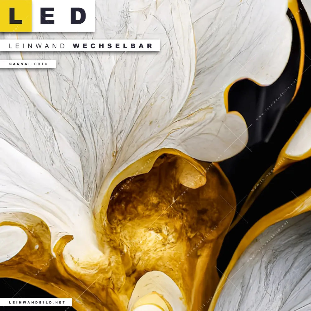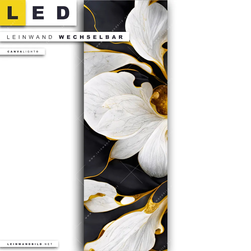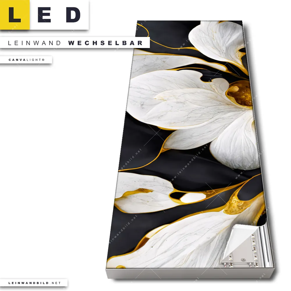 LED Leinwandbild Canvalight® TEX | Marmor Blüten in weiß & gold | Schmal