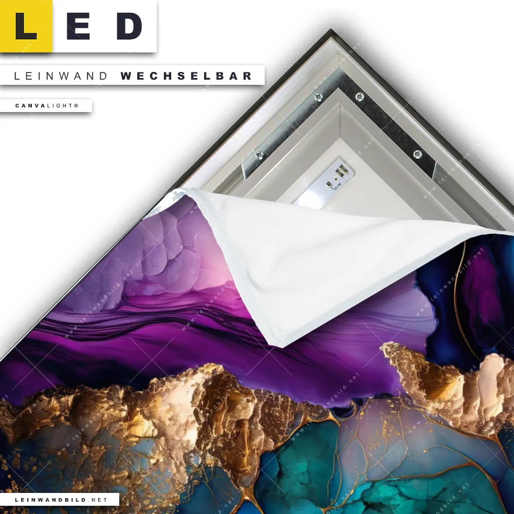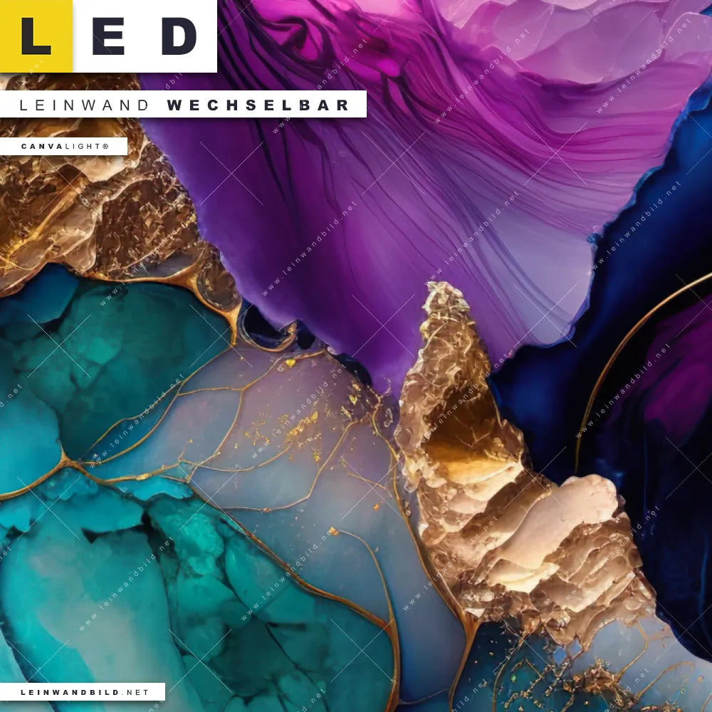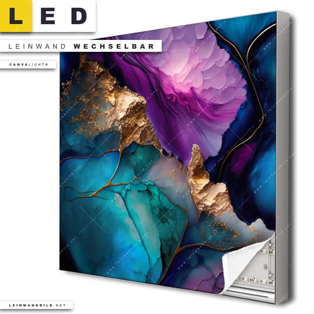 Du bist auf der Suche nach einem Muster - Texturen LED Leinwandbild im Quadratischen Format? Begriffe wie Marmor, Flüssigkeit, Acryl, flüssig, Farbe, Marmorierung, Tinte, Fluid Art haben Dich auf der Suche nach Deinem neuen XXL LED Wandbild mit wechselbarer Leinwand inspiriert? Farben wie Lila, Blau, Gold, Türkis dürfen auf Deinem neuen Leinwand-LED-Bild nicht fehlen und Leuchtbilder im Abstrakt, Modern Art Stil passen perfekt zu Deinem Einrichtungsstil?