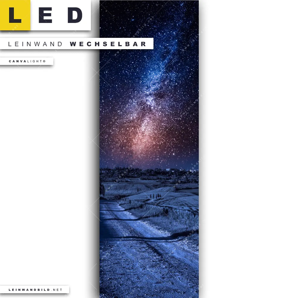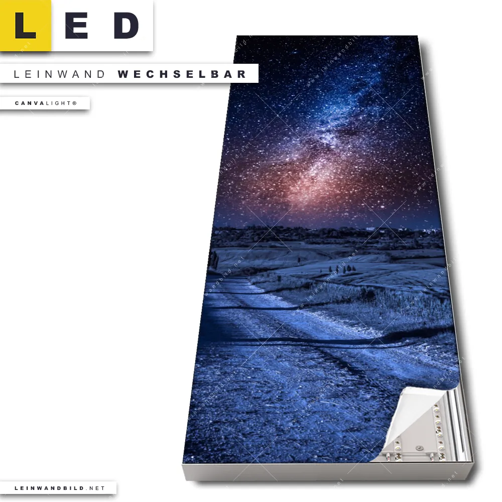 LED Leinwandbild Canvalight® TEX | Milchstraße über einem Feldweg | Schmal