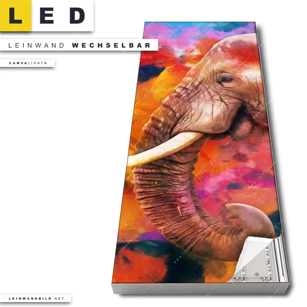 LED Leinwandbild Canvalight® TEX | Moderner Bunter Elefant | Schmal