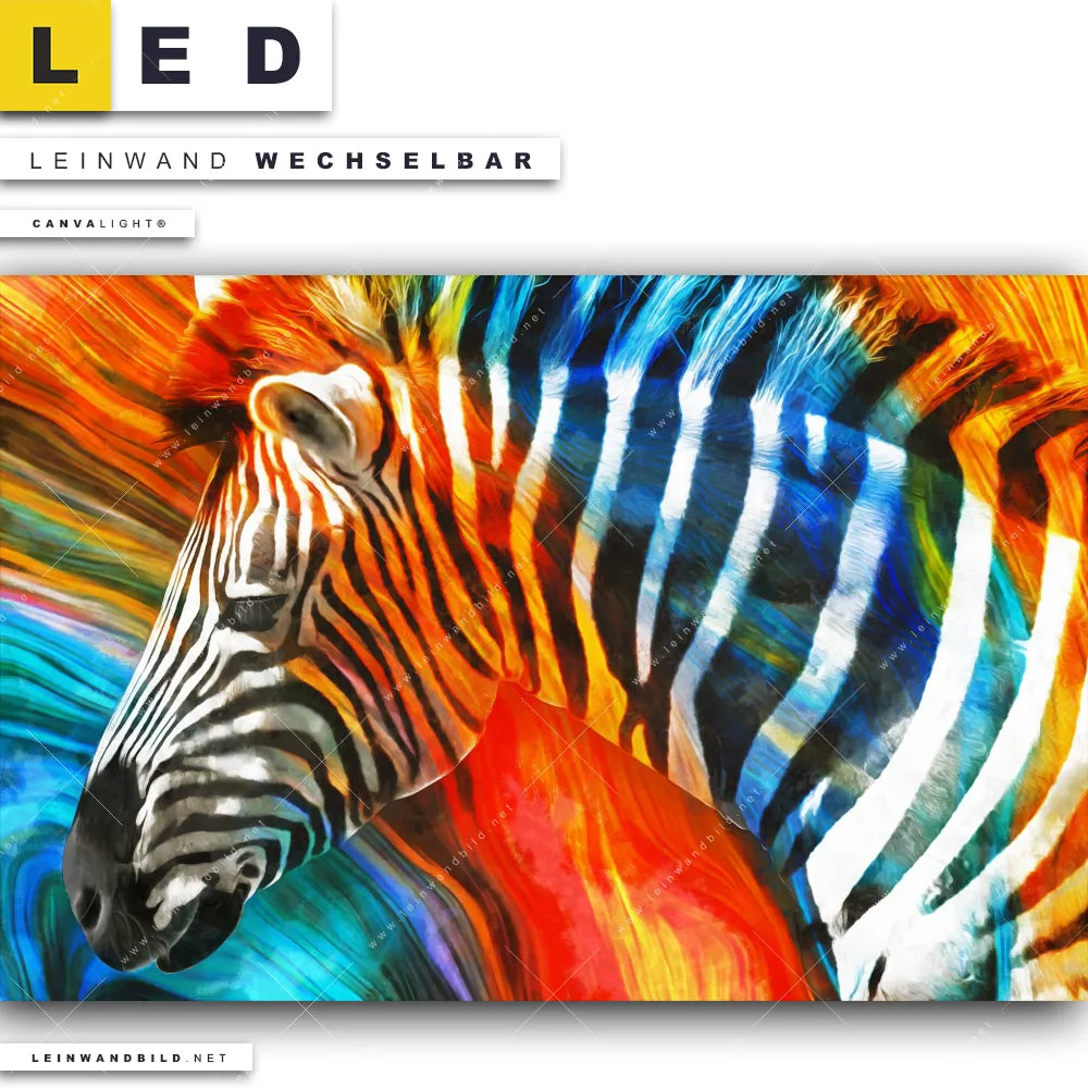 LED Leinwandbild Canvalight® TEX | Modernes Buntes Zebra | Querformat