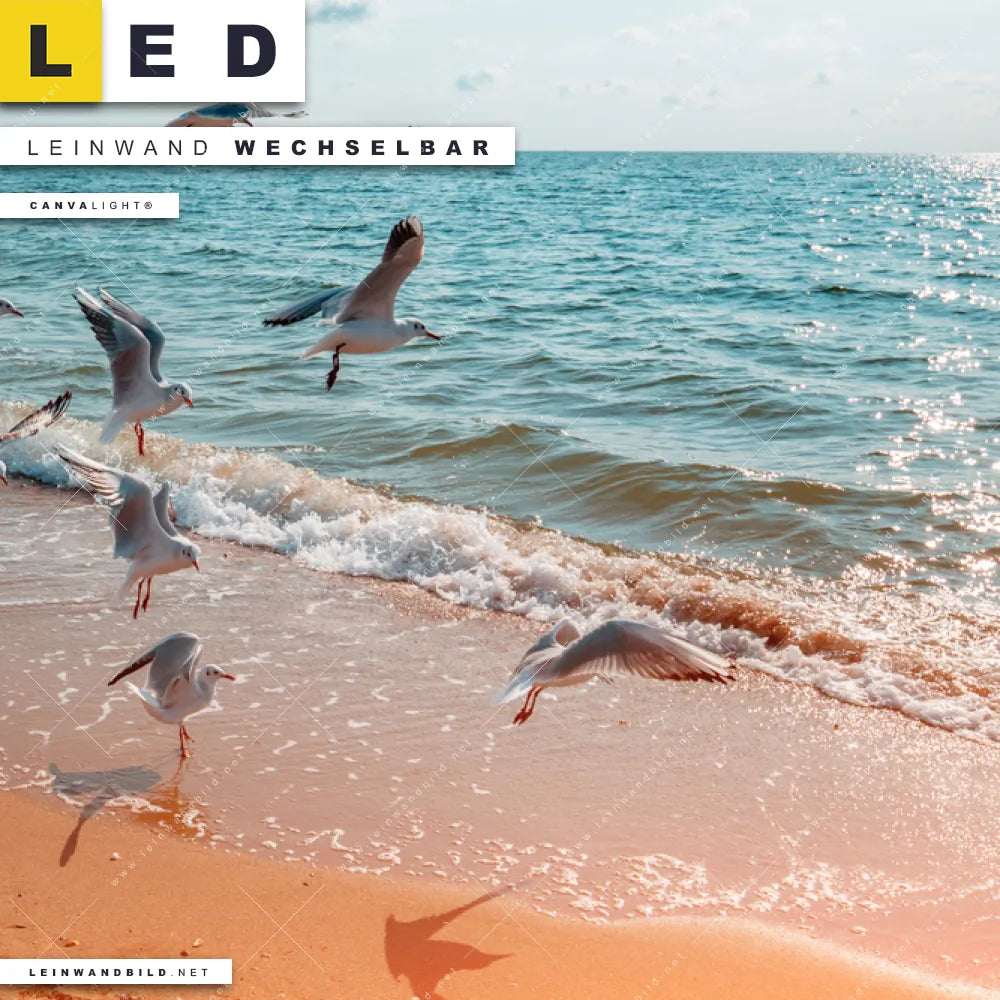Du bist auf der Suche nach einem Landschaften, Strand - Meer LED Leinwandbild im Quadratischen Format? Begriffe wie Deutschland, Möwe, Vogel, Sommer, Ostsee - Nordsee, Urlaub - Reisen, Sand, Küste, Frühling haben Dich auf der Suche nach Deinem neuen XXL LED Wandbild mit wechselbarer Leinwand inspiriert? Farben wie Orange, Türkis, Blau, Hellblau dürfen auf Deinem neuen Leinwand-LED-Bild nicht fehlen und Leuchtbilder im Natürlich - Realistisch Stil passen perfekt zu Deinem Einrichtungsstil?