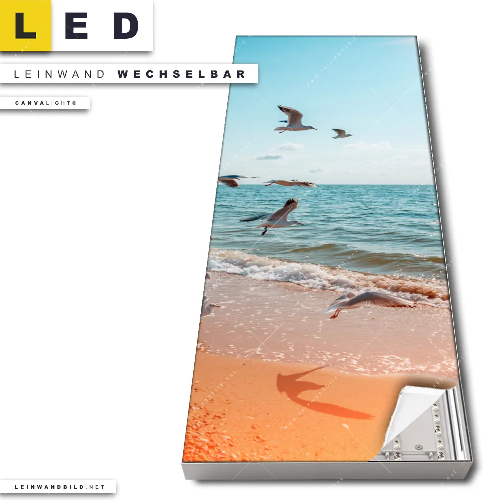 LED Leinwandbild Canvalight® TEX | Möwen am Strand | Schmal