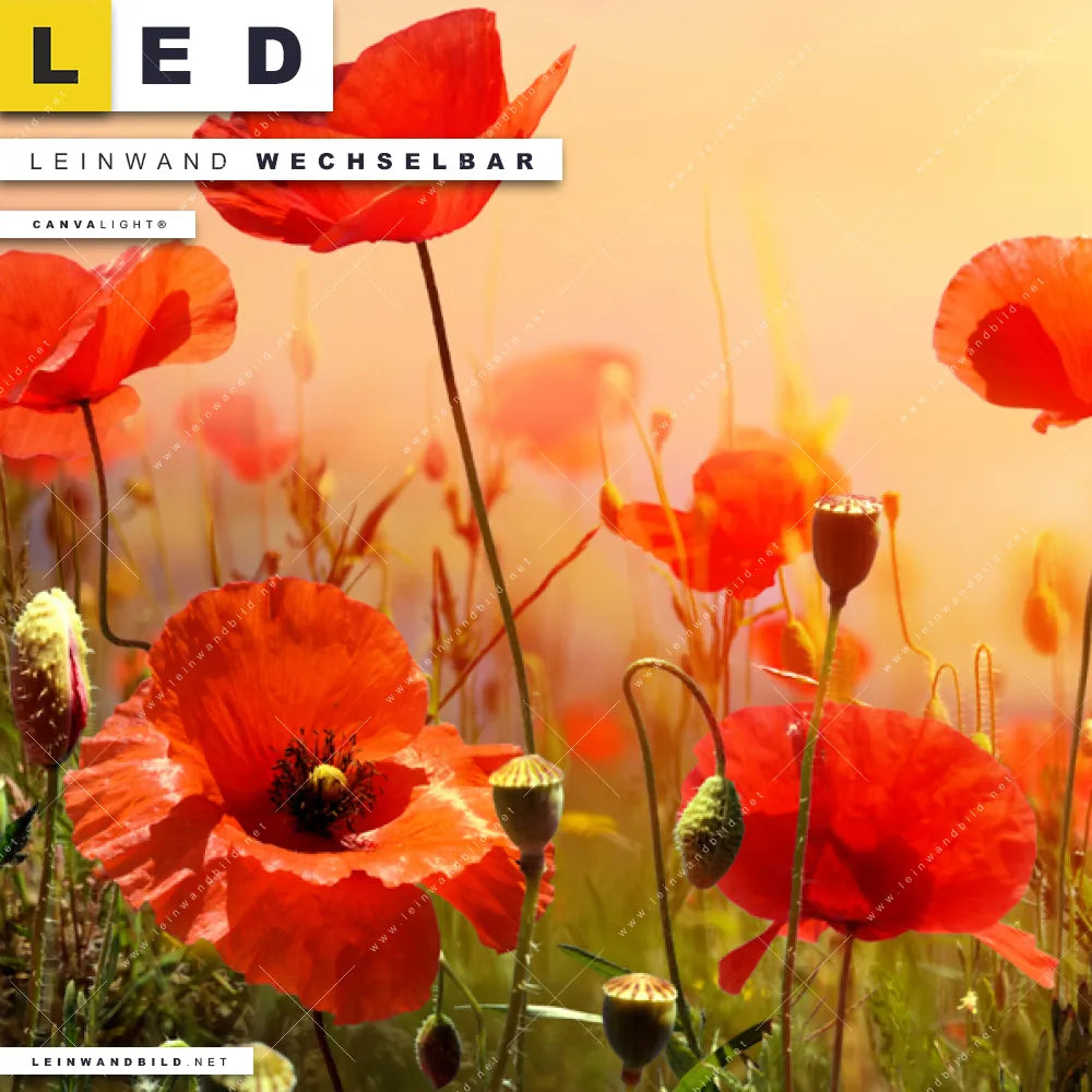 Du konfigurierst Dein individuelles LED Leinwandbild Canvalight® TEX | Mohnblumenfeld bei Sonnenuntergang | Panorama und wir produzieren es NEU für Dich. Unsere Landschaften, Blumen - Botanik LED Bilder mit wechselbarer Textil-Leinwand sind KEINE Lagerware. Du bist Dir unsicher, welches Motiv oder Format das richtige für dein individuelles Canvalight® Leuchtbild ist, dann helfen wir dir gerne weiter und beraten dich!