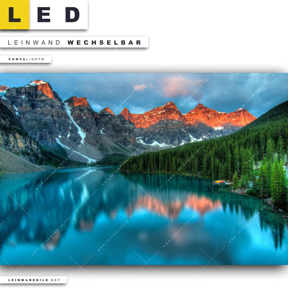 LED Leinwandbild Canvalight® TEX | Moränensee Sonnenaufgang | Querformat