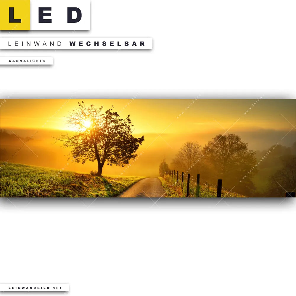 Du bist auf der Suche nach einem Landschaften LED Leinwandbild im Panorama-Format? Begriffe wie Sonnenaufgang, Horizont, Landschaft, Urlaub, Reisen, Nebel, Morgenstimmung, Spaziergang, Hügel haben Dich auf der Suche nach Deinem neuen XXL LED Wandbild mit wechselbarer Leinwand inspiriert? Farben wie Orange dürfen auf Deinem neuen extra breiten Leinwand-LED-Bild nicht fehlen und Leuchtbilder im Natürlich - Realistisch Stil passen perfekt zu Deinem Einrichtungsstil?