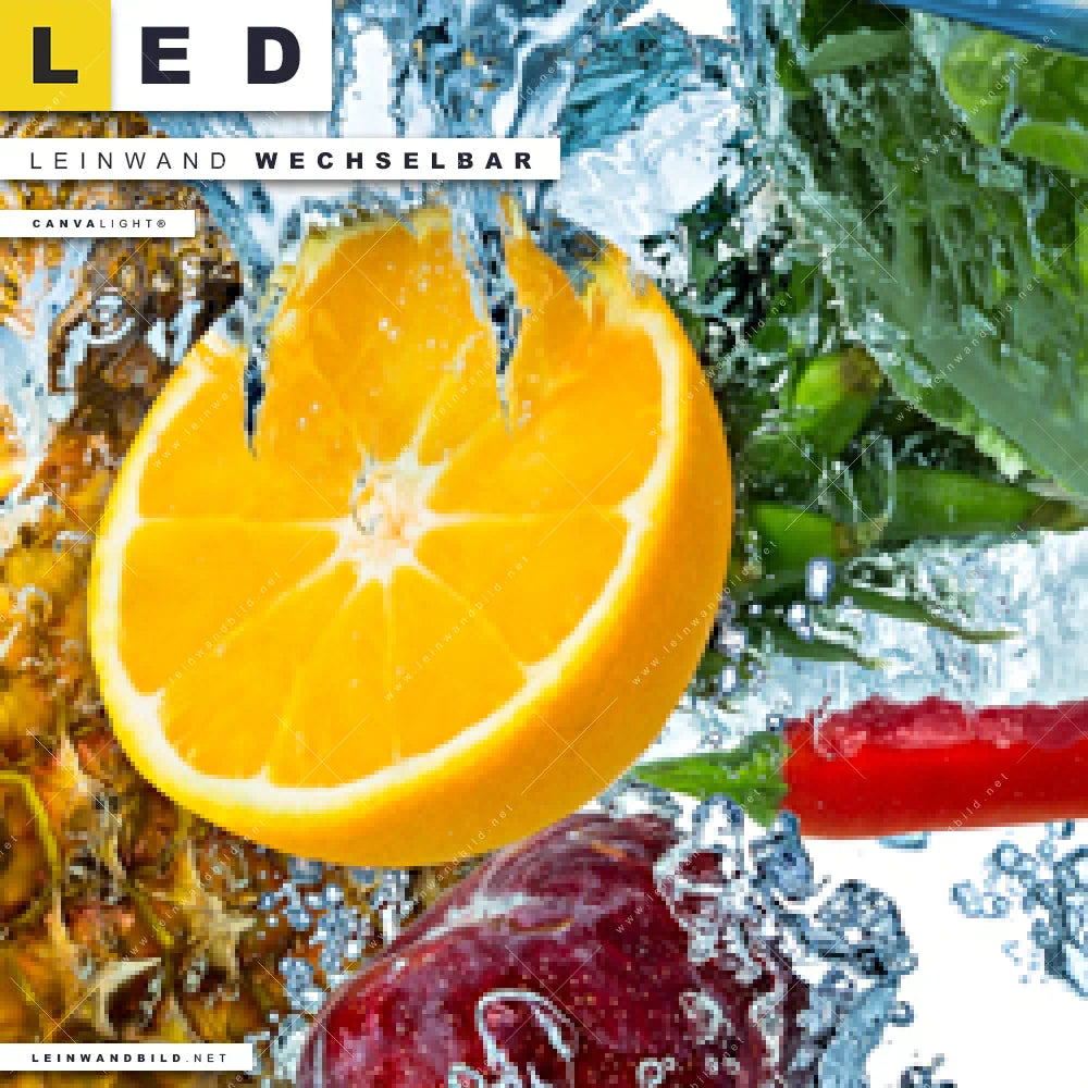 Du bist auf der Suche nach einem Essen - Trinken LED Leinwandbild im Hochformat? Begriffe wie Obst, Zitrusfrüchte, Früchte, frisch, spritzig, Spritzwasser, Wasser, Spritzer, Tropfen, Wassertropfen, Orange, Apfel, Zitrone, Gemüse haben Dich auf der Suche nach Deinem neuen XXL LED Wandbild mit wechselbarer Leinwand inspiriert? Farben wie Bunt, Weiss, Blau, Gelb , Grün, Hellblau, Hellgrün, Orange, Rot, Rosa dürfen auf Deinem neuen Leinwand-LED-Bild nicht fehlen und Leuchtbilder im Mixed Media, Modern Art Stil passen perfekt zu Deinem Einrichtungsstil?