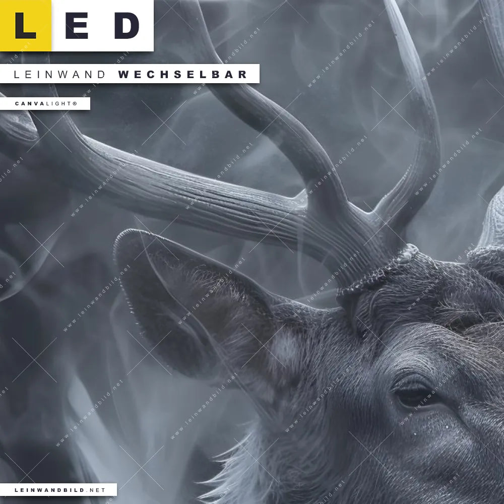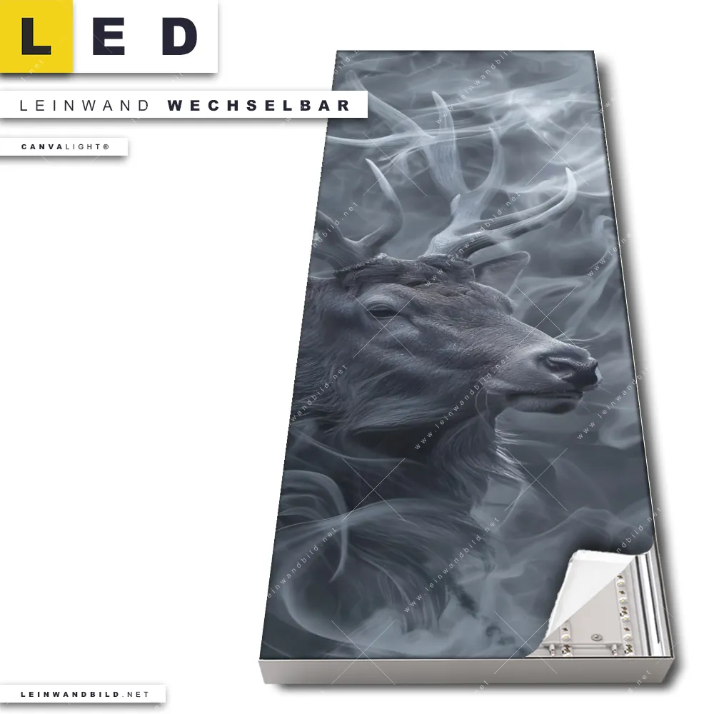 LED Leinwandbild Canvalight® TEX | Mystischer Hirsch im Nebel | Schmal
