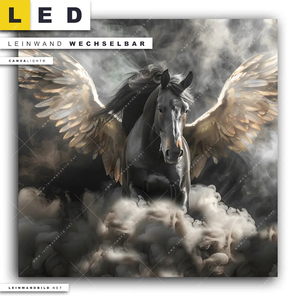 LED Leinwandbild Canvalight® TEX | Mystisches Pferd mit Flügeln | Quadrat