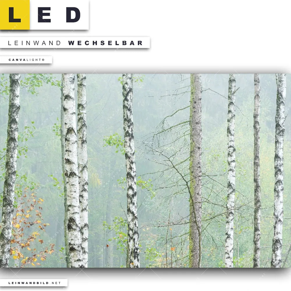 LED Leinwandbild Canvalight® TEX | Nebliger Birkenwald | Querformat