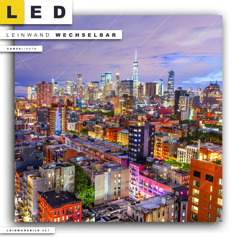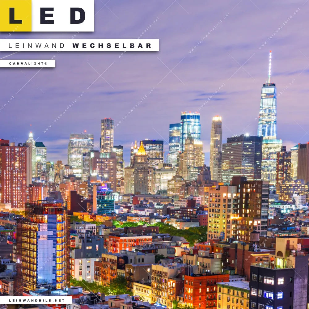Du bist auf der Suche nach einem Architektur - Gebäude, Städte - Skylines LED Leinwandbild im Quadratischen Format? Begriffe wie Skyline, Amerika, New York, Abendhimmel, Stadtpanorama, Metropole, Nachtlichter haben Dich auf der Suche nach Deinem neuen XXL LED Wandbild mit wechselbarer Leinwand inspiriert? Farben wie Bunt dürfen auf Deinem neuen Leinwand-LED-Bild nicht fehlen und Leuchtbilder im Natürlich - Realistisch Stil passen perfekt zu Deinem Einrichtungsstil?