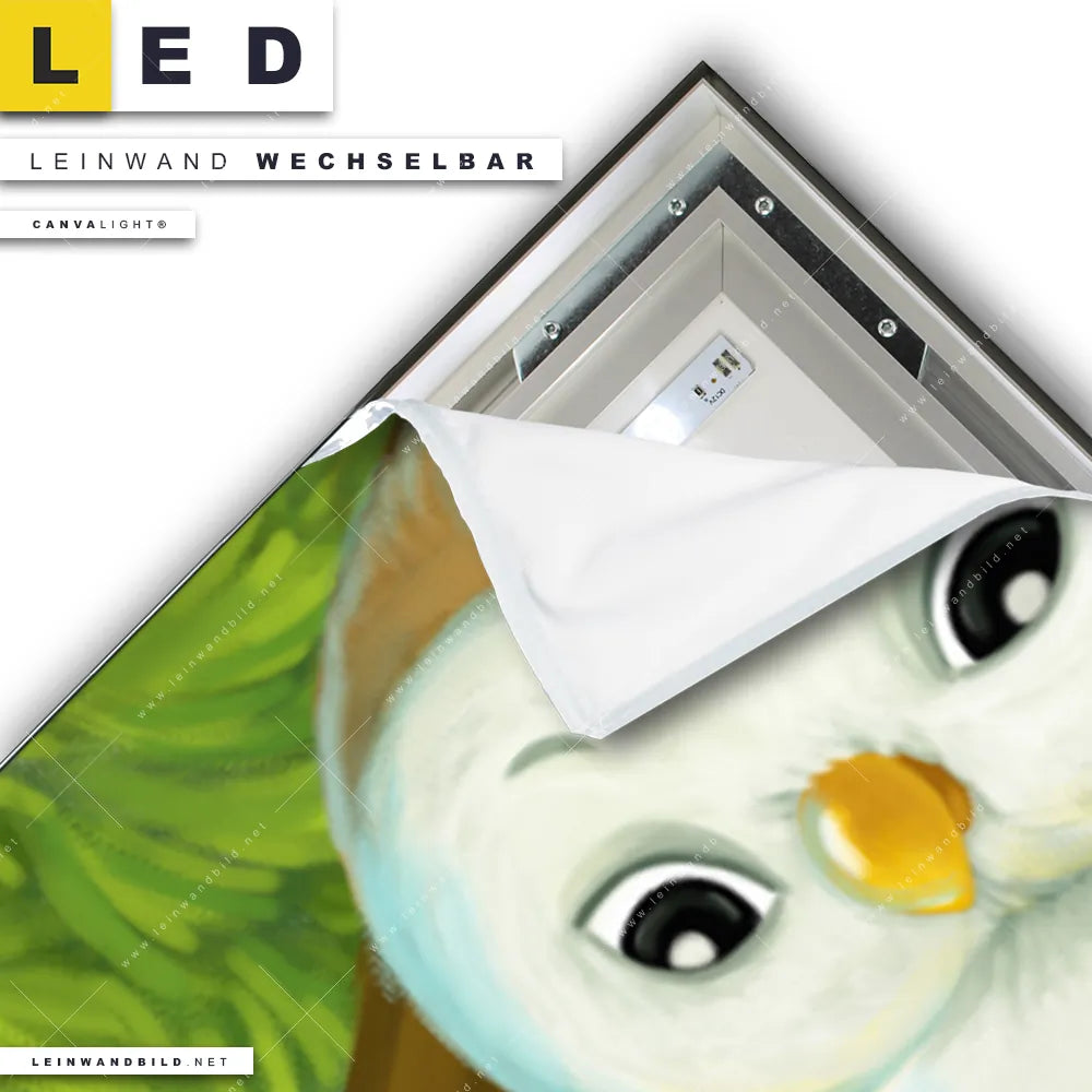 Du konfigurierst Dein individuelles LED Leinwandbild Canvalight® TEX | Niedliche Waldtiere | Schmal und wir produzieren es NEU für Dich. Unsere Tierwelt LED Bilder mit wechselbarer Textil-Leinwand sind KEINE Lagerware. Du bist Dir unsicher, welches Motiv oder Format das richtige für dein individuelles Canvalight® Leuchtbild ist, dann helfen wir dir gerne weiter und beraten dich!