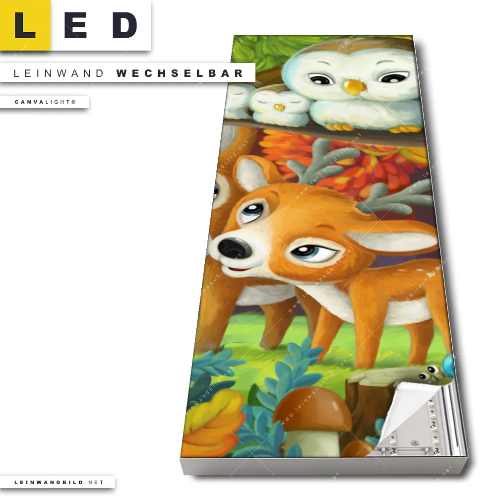 LED Leinwandbild Canvalight® TEX | Niedliche Waldtiere | Schmal
