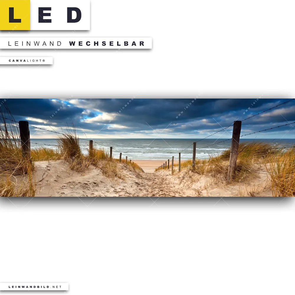 Du bist auf der Suche nach einem Landschaften, Strand - Meer LED Leinwandbild im Panorama-Format? Begriffe wie Deutschland, Herbst, Sommer, Weg, Ostsee - Nordsee, Urlaub - Reisen, Sonnenuntergang - Sonnenaufgang, Dünen, Gräser haben Dich auf der Suche nach Deinem neuen XXL LED Wandbild mit wechselbarer Leinwand inspiriert? Farben wie Beige, Blau dürfen auf Deinem neuen extra breiten Leinwand-LED-Bild nicht fehlen und Leuchtbilder im Natürlich - Realistisch Stil passen perfekt zu Deinem Einrichtungsstil?