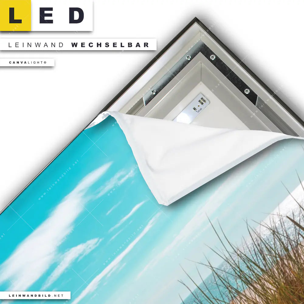 Du konfigurierst Dein individuelles LED Leinwandbild Canvalight® TEX | Nordseelandschaft auf Sylt | Hochformat und wir produzieren es NEU für Dich. Unsere Landschaften, Strand - Meer LED Bilder mit wechselbarer Textil-Leinwand sind KEINE Lagerware. Du bist Dir unsicher, welches Motiv oder Format das richtige für dein individuelles Canvalight® Leuchtbild ist, dann helfen wir dir gerne weiter und beraten dich!