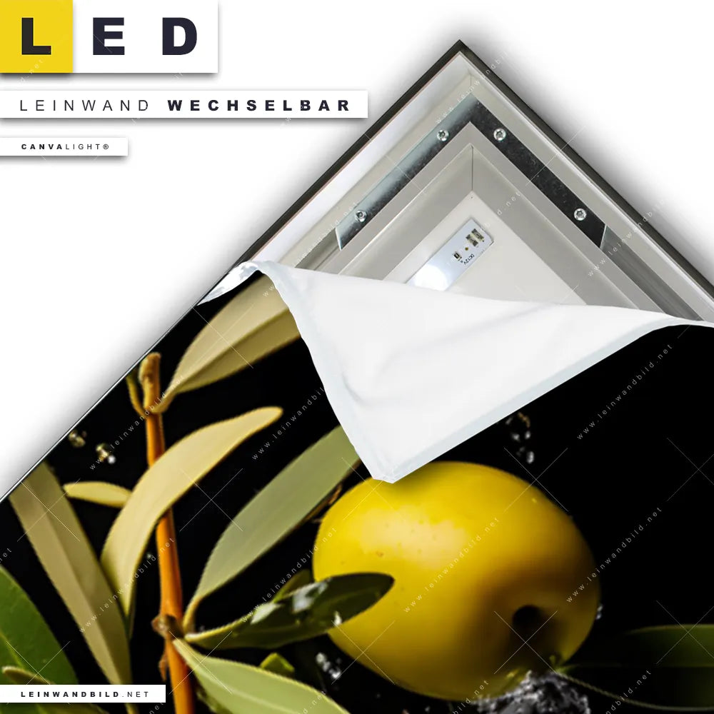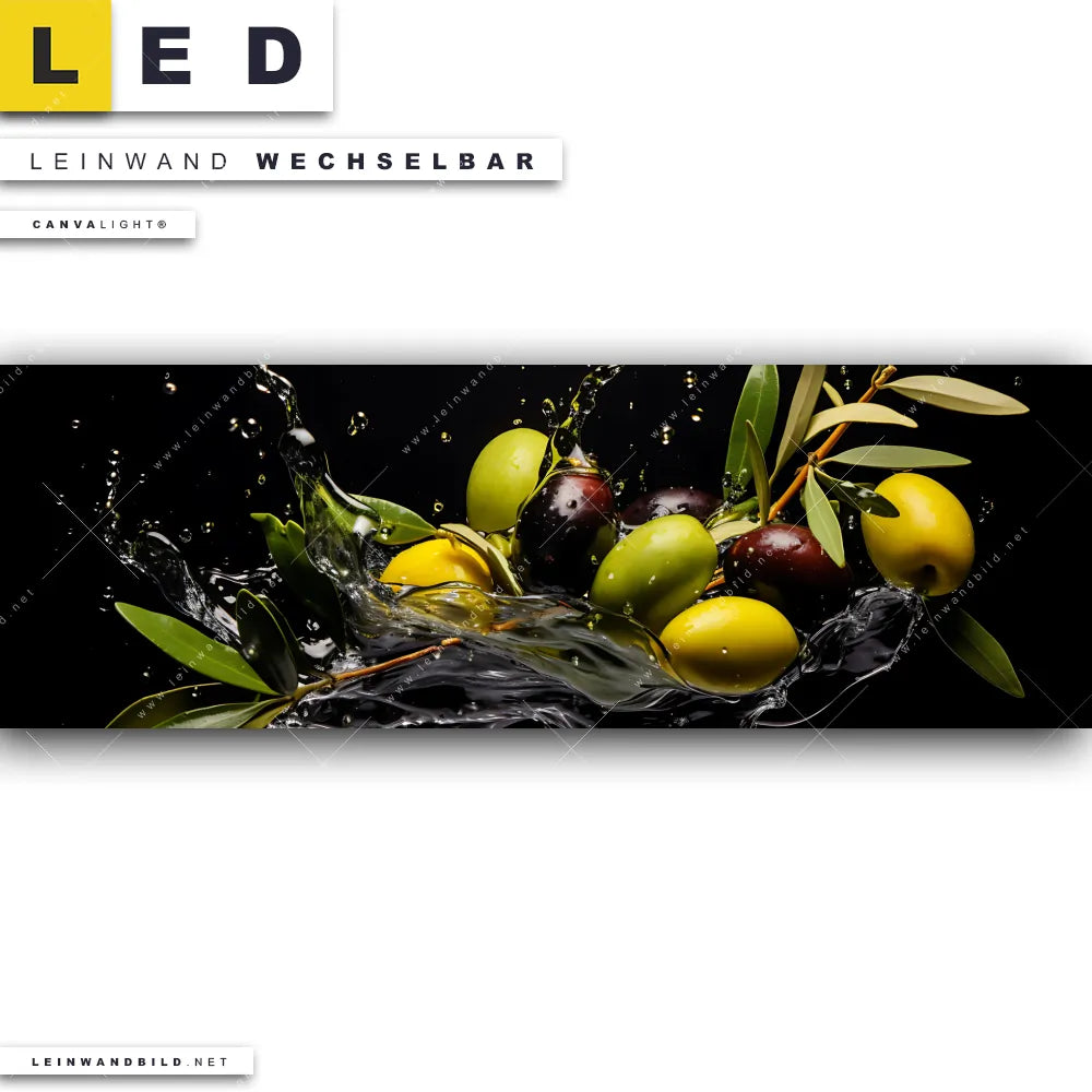 LED Leinwandbild Canvalight® TEX | Oliven Splash | Panorama