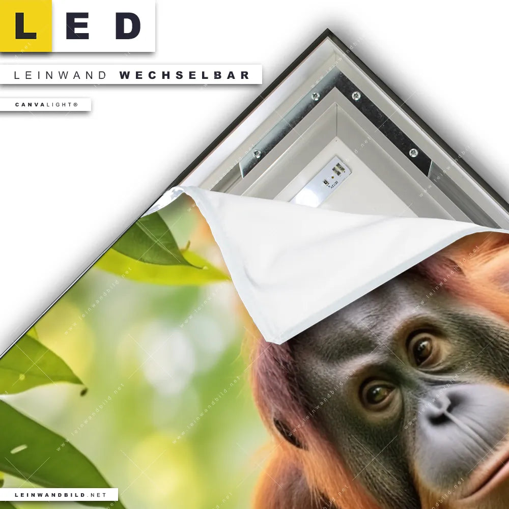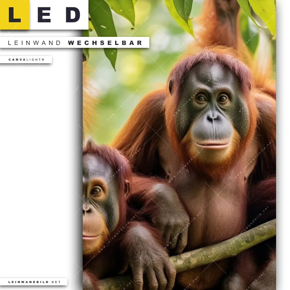 Du bist auf der Suche nach einem Tierwelt LED Leinwandbild im Hochformat? Begriffe wie Dschungel, Regenwald, Affe, Orang-Utan, Dschnugel - Tiere haben Dich auf der Suche nach Deinem neuen XXL LED Wandbild mit wechselbarer Leinwand inspiriert? Farben wie Grün, Braun, Rot dürfen auf Deinem neuen Leinwand-LED-Bild nicht fehlen und Leuchtbilder im Natürlich - Realistisch Stil passen perfekt zu Deinem Einrichtungsstil?