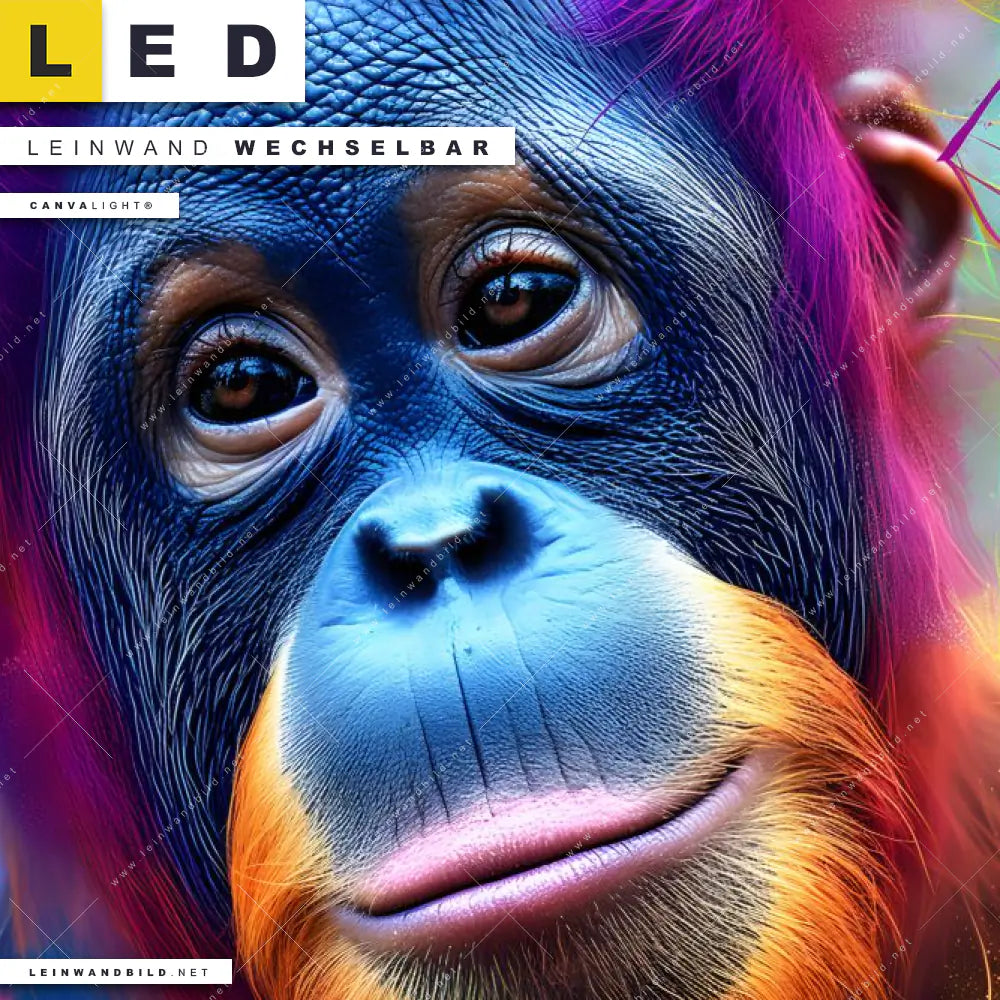 LED Leinwandbild Canvalight® TEX | Orang-Utan in Regenbogenfarben | Panorama