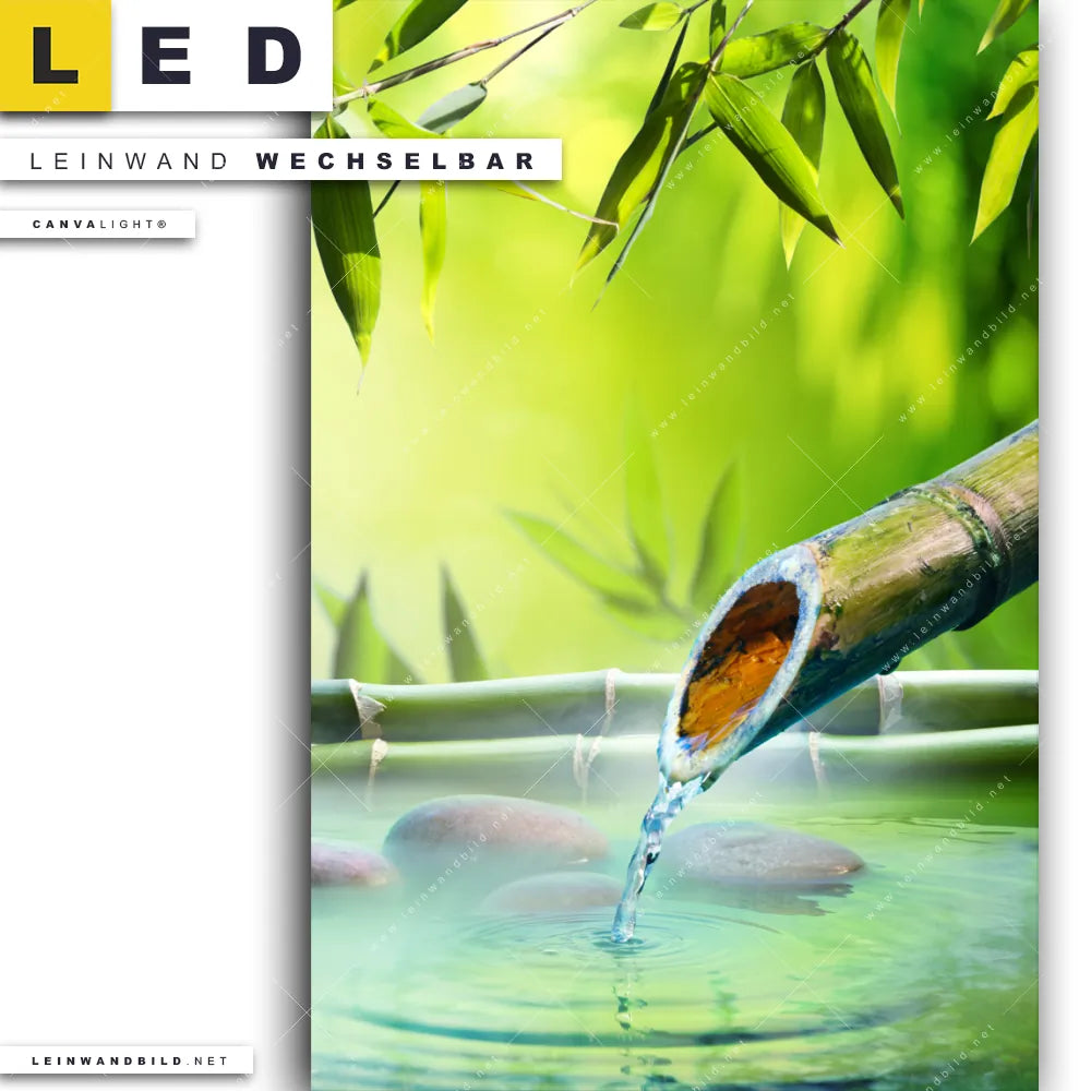 LED Leinwandbild Canvalight® TEX | Orchidee im japanischer Brunnen | Hochformat
