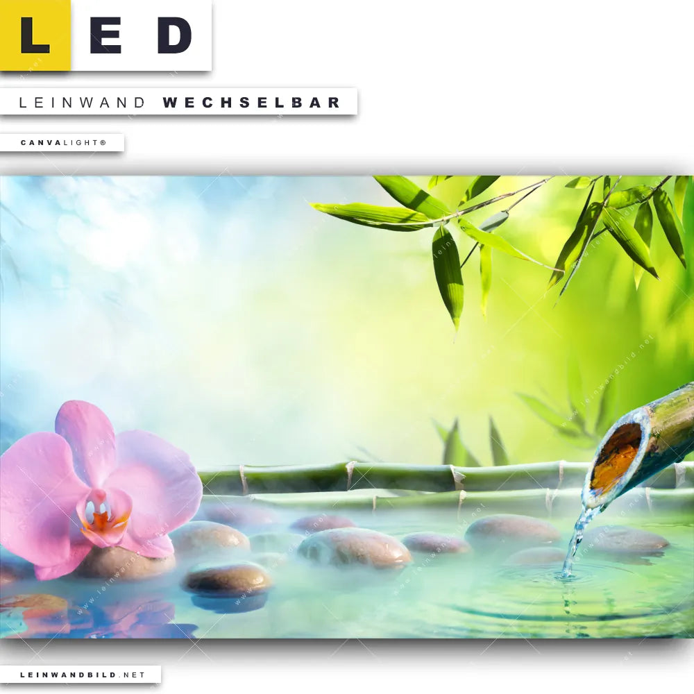 LED Leinwandbild Canvalight® TEX | Orchidee im japanischer Brunnen | Querformat