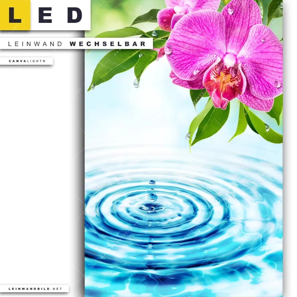 LED Leinwandbild Canvalight® TEX | Orchidee & Wassertropfen | Hochformat