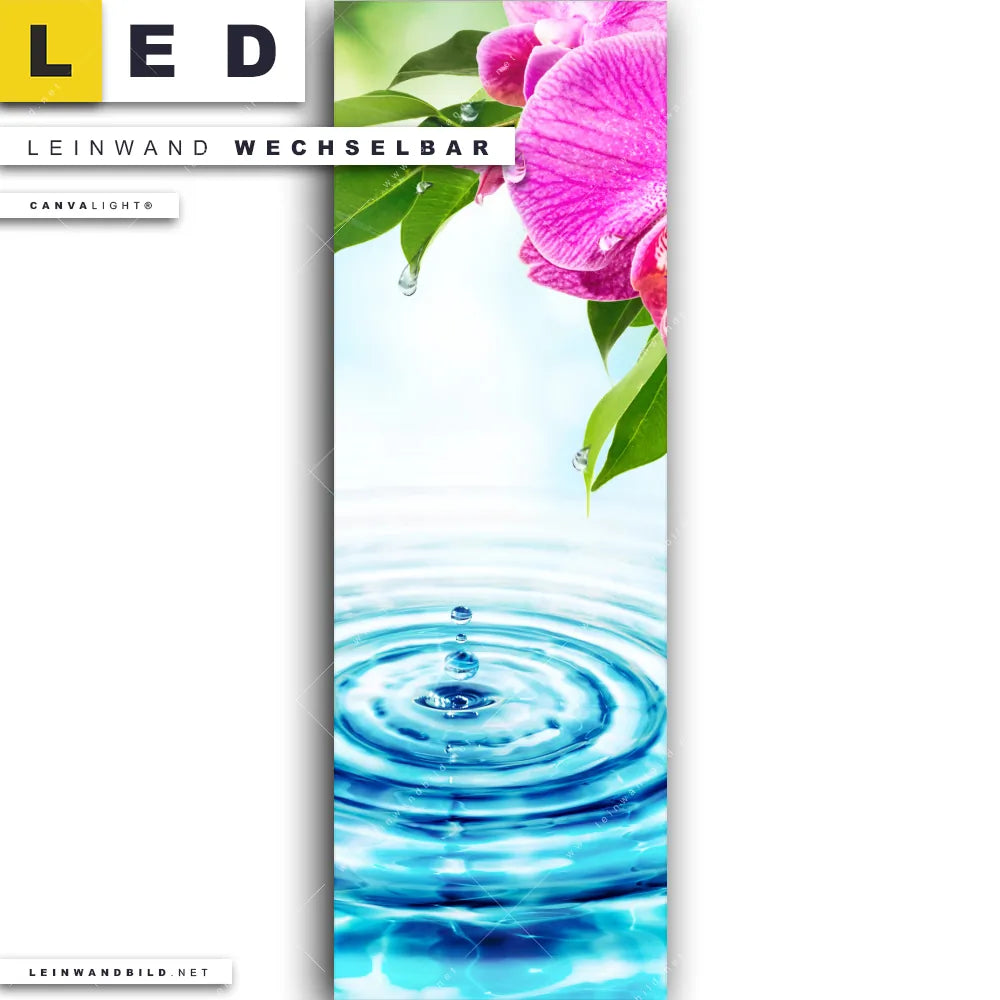 LED Leinwandbild Canvalight® TEX | Orchidee & Wassertropfen | Schmal