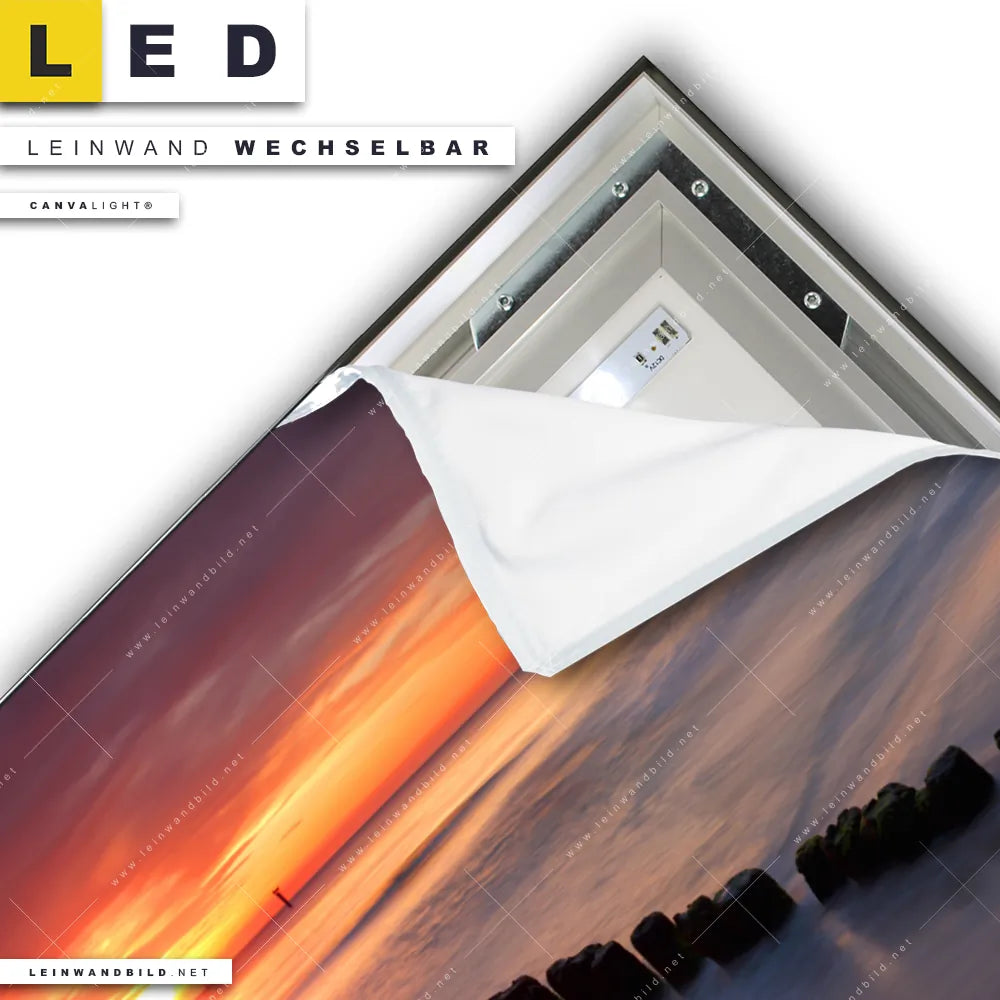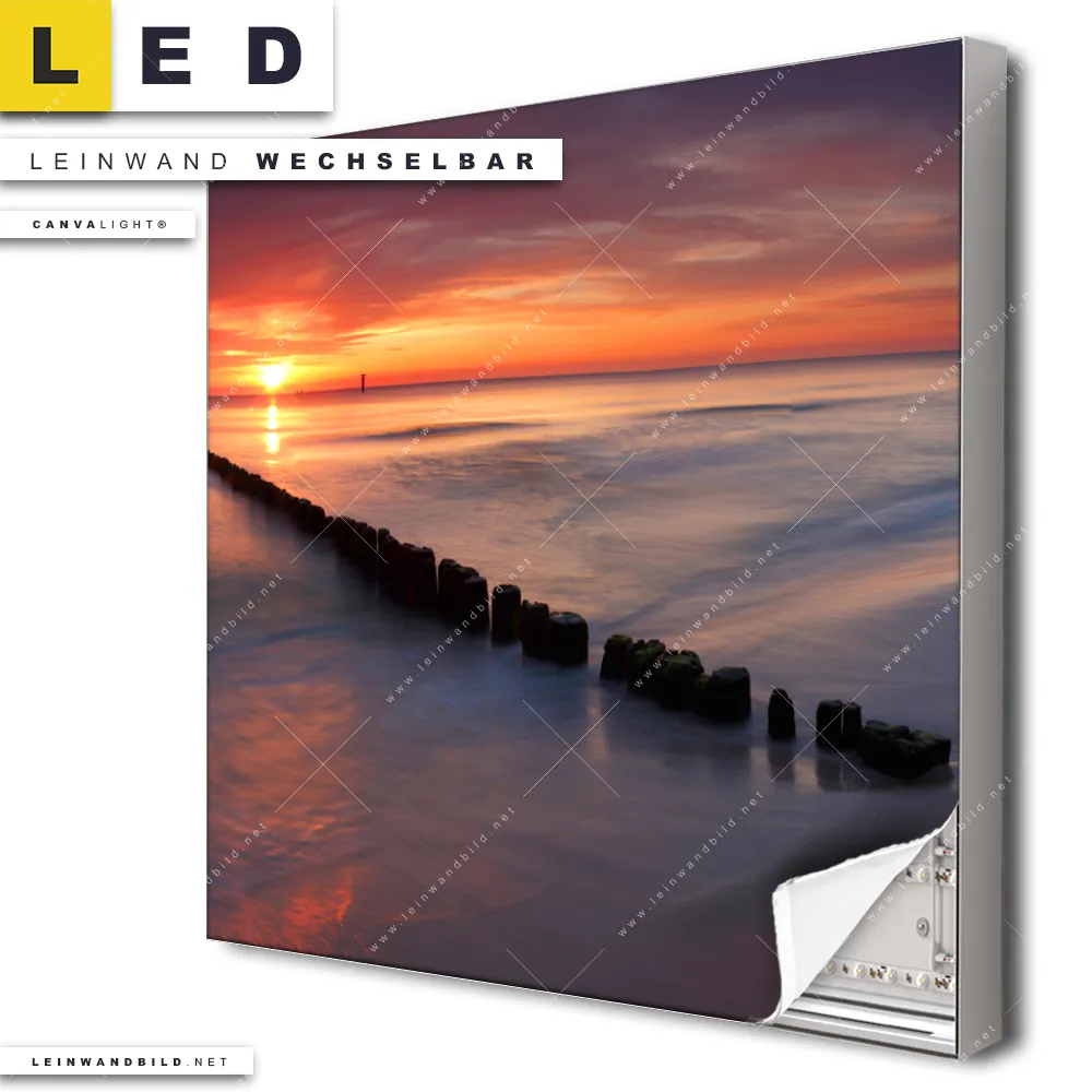 Du konfigurierst Dein individuelles LED Leinwandbild Canvalight® TEX | Ostsee Sonnenuntergang | Quadrat und wir produzieren es NEU für Dich. Unsere Strand - Meer, Landschaften LED Bilder mit wechselbarer Textil-Leinwand sind KEINE Lagerware. Du bist Dir unsicher, welches Motiv oder Format das richtige für dein individuelles Canvalight® Leuchtbild ist, dann helfen wir dir gerne weiter und beraten dich!