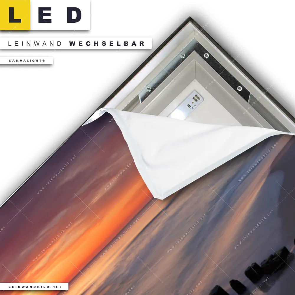 Du konfigurierst Dein individuelles LED Leinwandbild Canvalight® TEX | Ostsee Sonnenuntergang | Querformat und wir produzieren es NEU für Dich. Unsere Strand - Meer, Landschaften LED Bilder mit wechselbarer Textil-Leinwand sind KEINE Lagerware. Du bist Dir unsicher, welches Motiv oder Format das richtige für dein individuelles Canvalight® Leuchtbild ist, dann helfen wir dir gerne weiter und beraten dich!