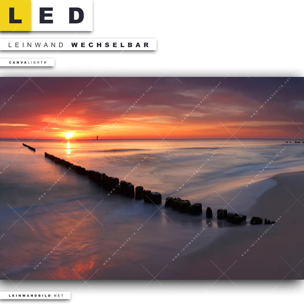 Du bist auf der Suche nach einem Strand - Meer, Landschaften LED Leinwandbild im Querformat? Begriffe wie Deutschland, Sommer, Urlaub - Reisen, Ostsee - Nordsee, Sonnenuntergang - Sonnenaufgang, Wellenbrecher, Buhnen haben Dich auf der Suche nach Deinem neuen XXL LED Wandbild mit wechselbarer Leinwand inspiriert? Farben wie Blau, Braun, Orange, Rot dürfen auf Deinem neuen breiten Leinwand-LED-Bild nicht fehlen und Leuchtbilder im Natürlich - Realistisch Stil passen perfekt zu Deinem Einrichtungsstil?