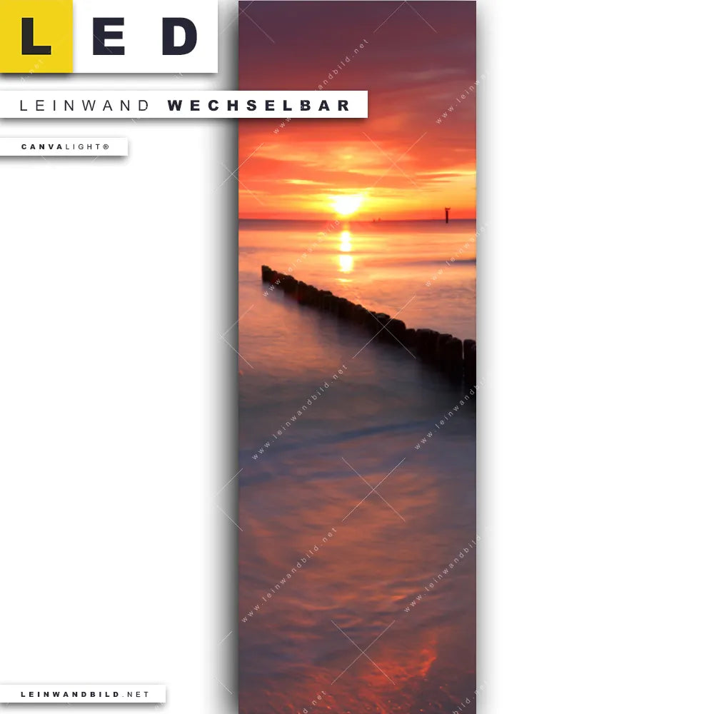 Du bist auf der Suche nach einem Strand - Meer, Landschaften LED Leinwandbild im Schmalen Format? Begriffe wie Deutschland, Sommer, Urlaub - Reisen, Ostsee - Nordsee, Sonnenuntergang - Sonnenaufgang, Wellenbrecher, Buhnen haben Dich auf der Suche nach Deinem neuen XXL LED Wandbild mit wechselbarer Leinwand inspiriert? Farben wie Blau, Braun, Orange, Rot dürfen auf Deinem neuen Leinwand-LED-Bild im Panorama-Hochformat nicht fehlen und Leuchtbilder im Natürlich - Realistisch Stil passen perfekt zu Deinem Einrichtungsstil?