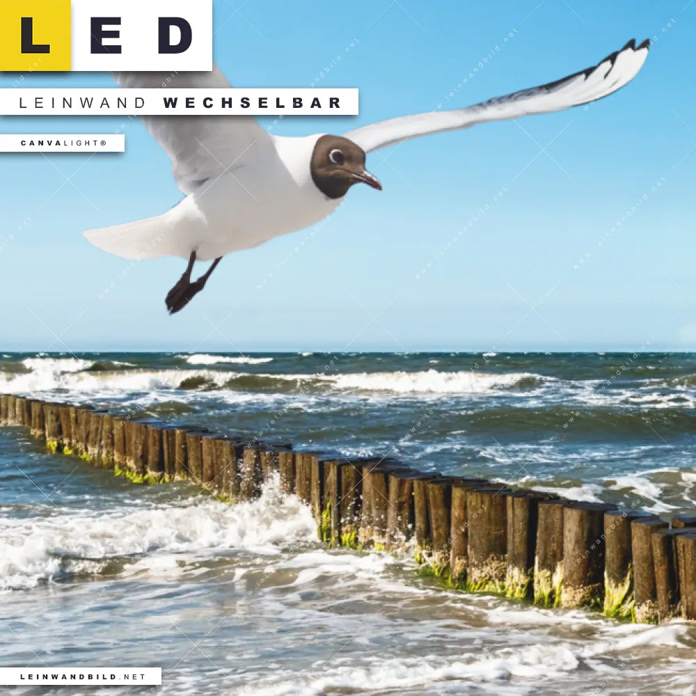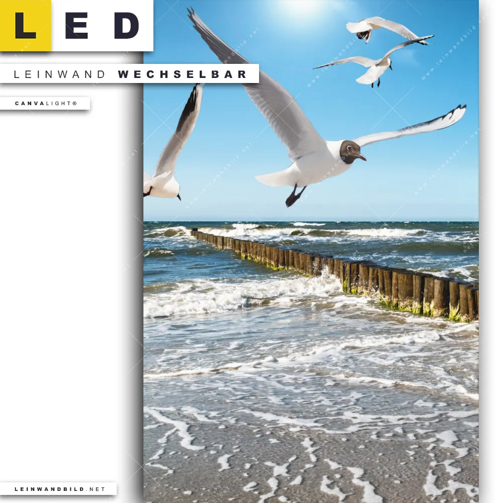 LED Leinwandbild Canvalight® TEX | Ostseeküste & Möwen | Hochformat