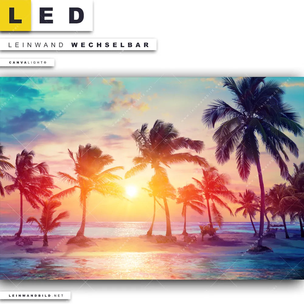 LED Leinwandbild Canvalight® TEX | Palmen bei Sonnenuntergang | Querformat