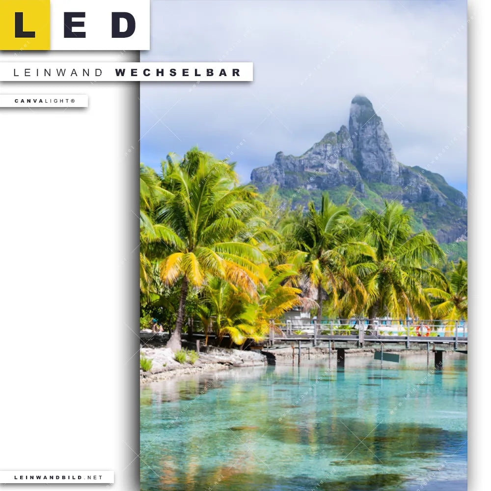 LED Leinwandbild Canvalight® TEX | Palmen & Berg auf Insel | Hochformat