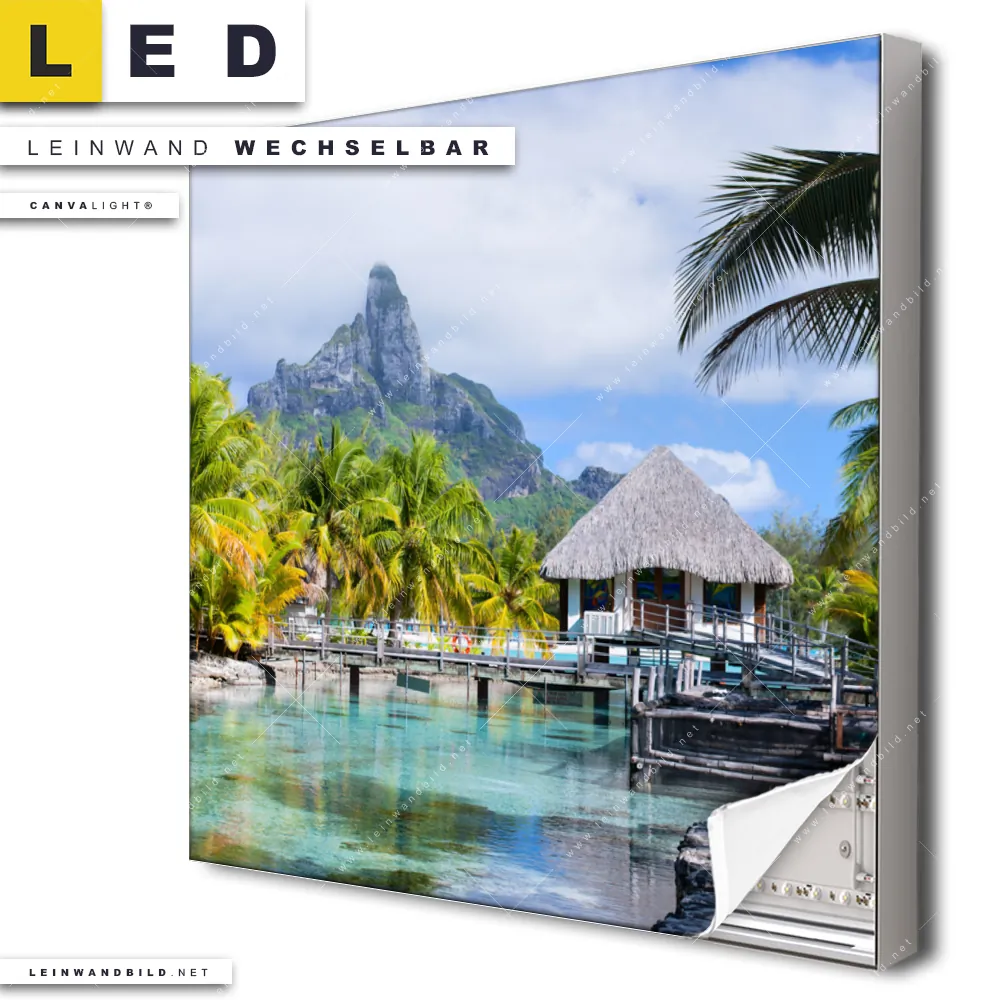 LED Leinwandbild Canvalight® TEX | Palmen & Berg auf Insel | Quadrat