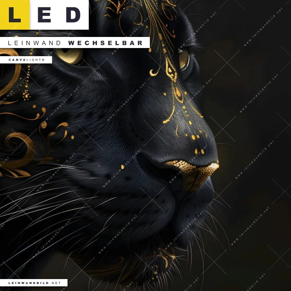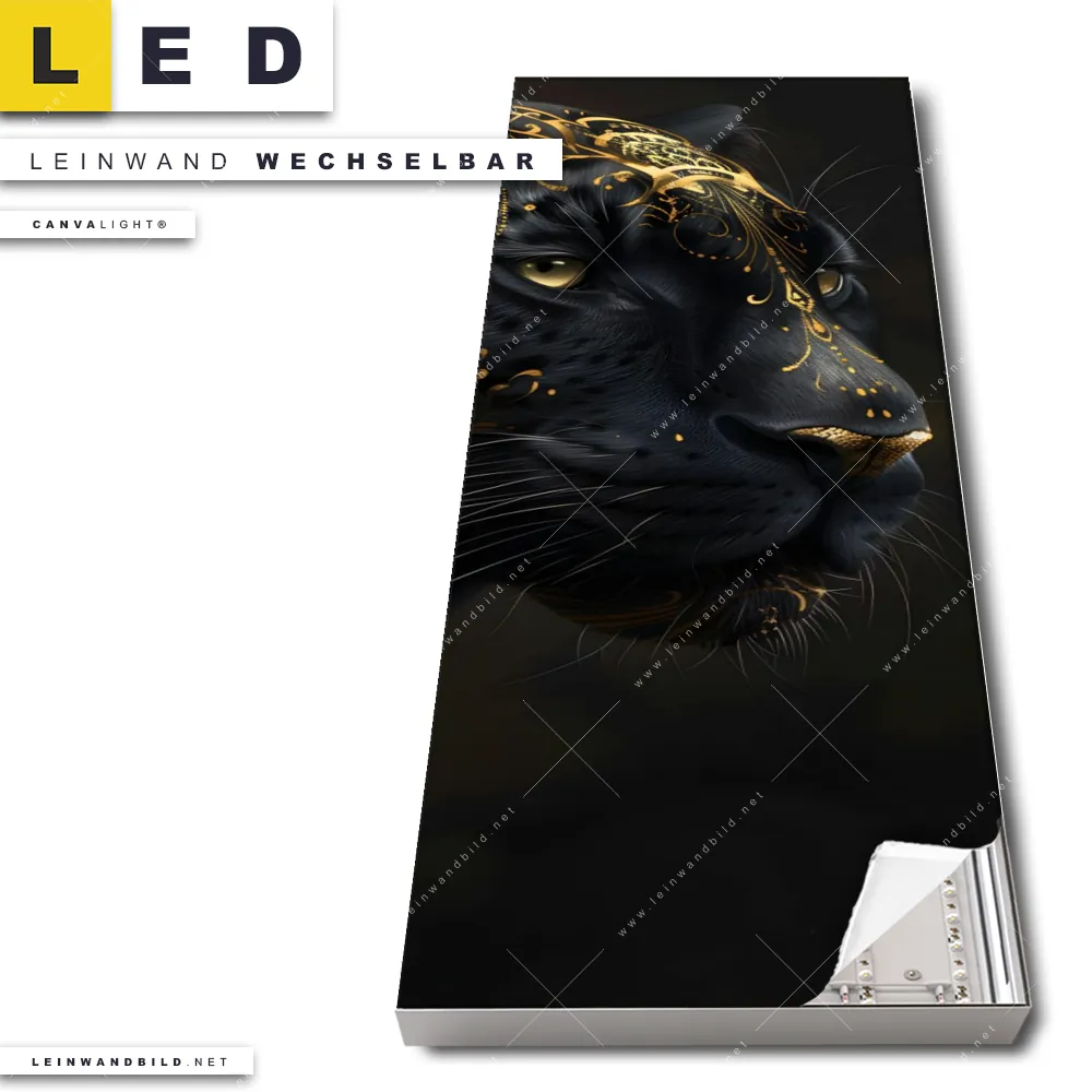 LED Leinwandbild Canvalight® TEX | Panther mit goldenen Ornamenten | Schmal