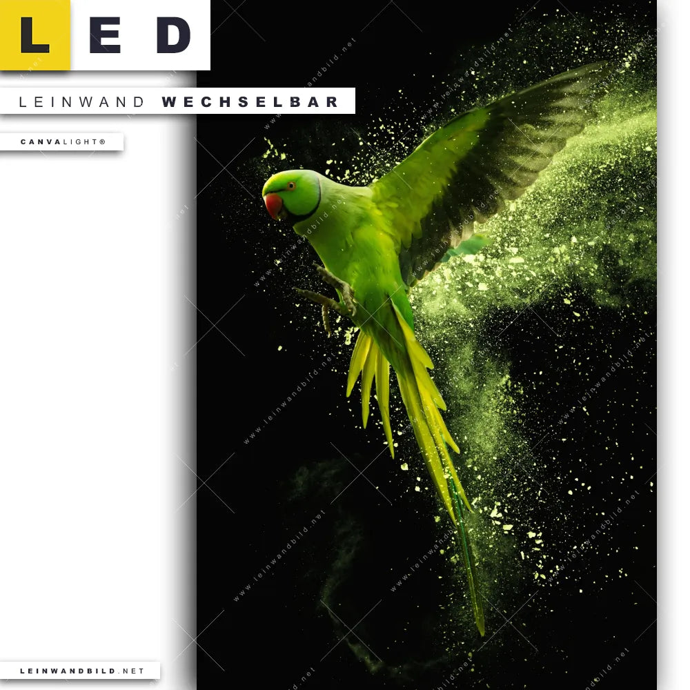 LED Leinwandbild Canvalight® TEX | Papagei - grüne Farbexplosion | Hochformat