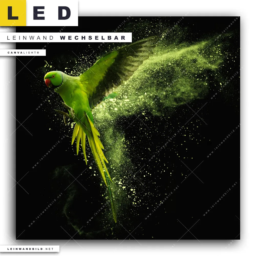 LED Leinwandbild Canvalight® TEX | Papagei - grüne Farbexplosion | Quadrat