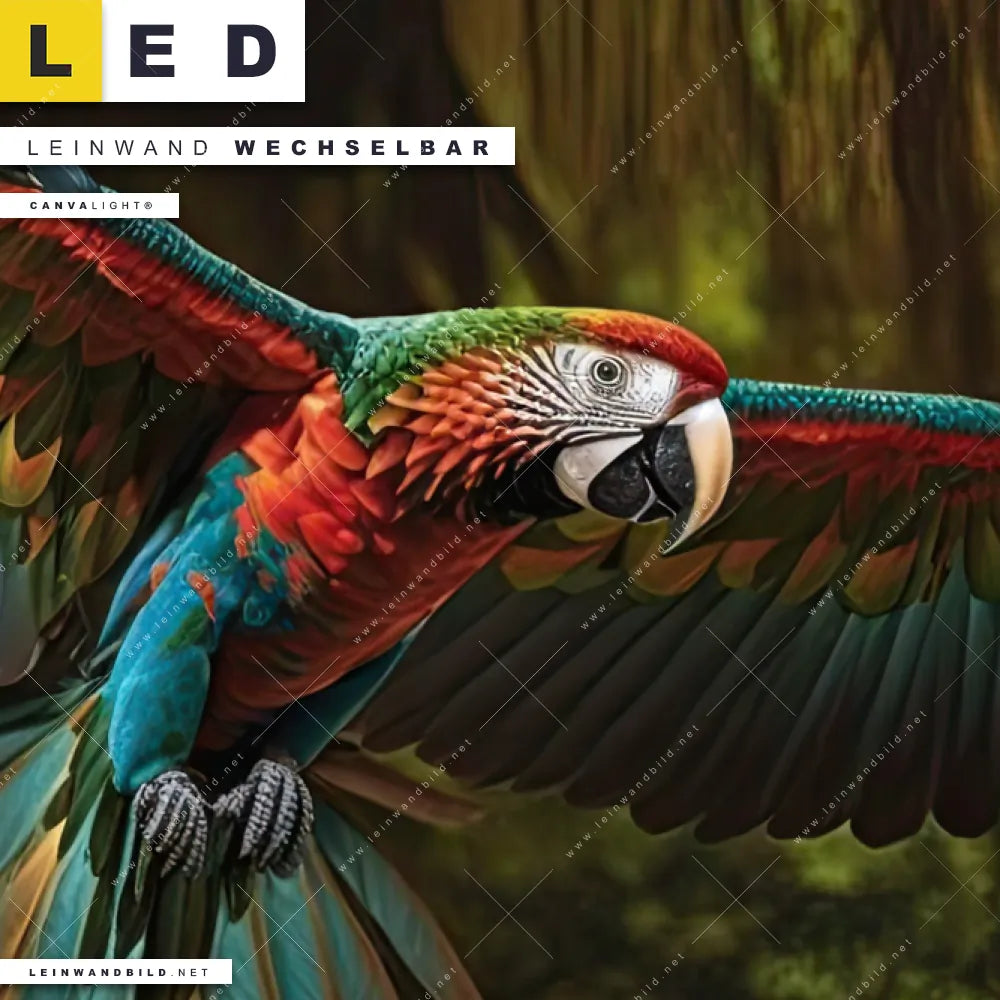 LED Leinwandbild Canvalight® TEX | Papagei im Flug | Querformat