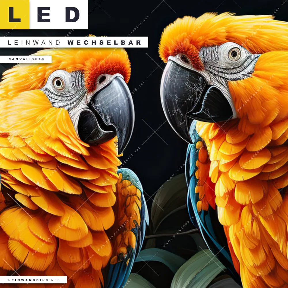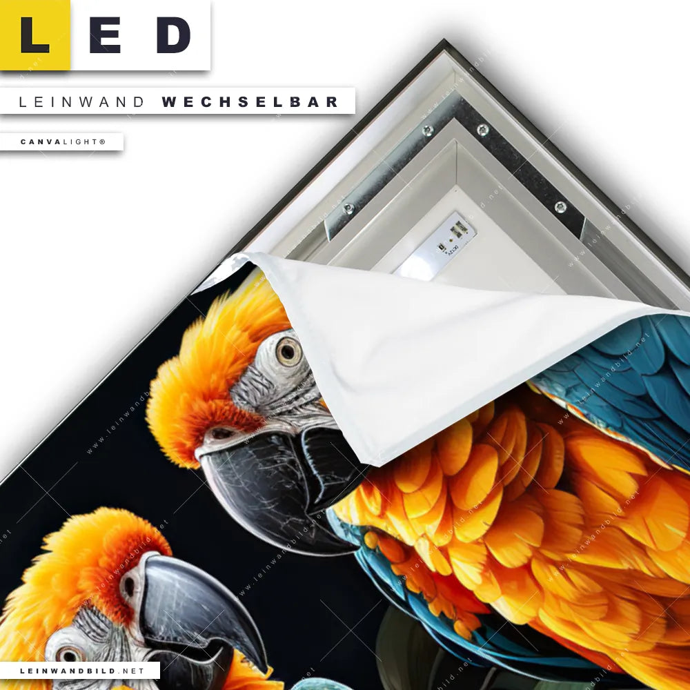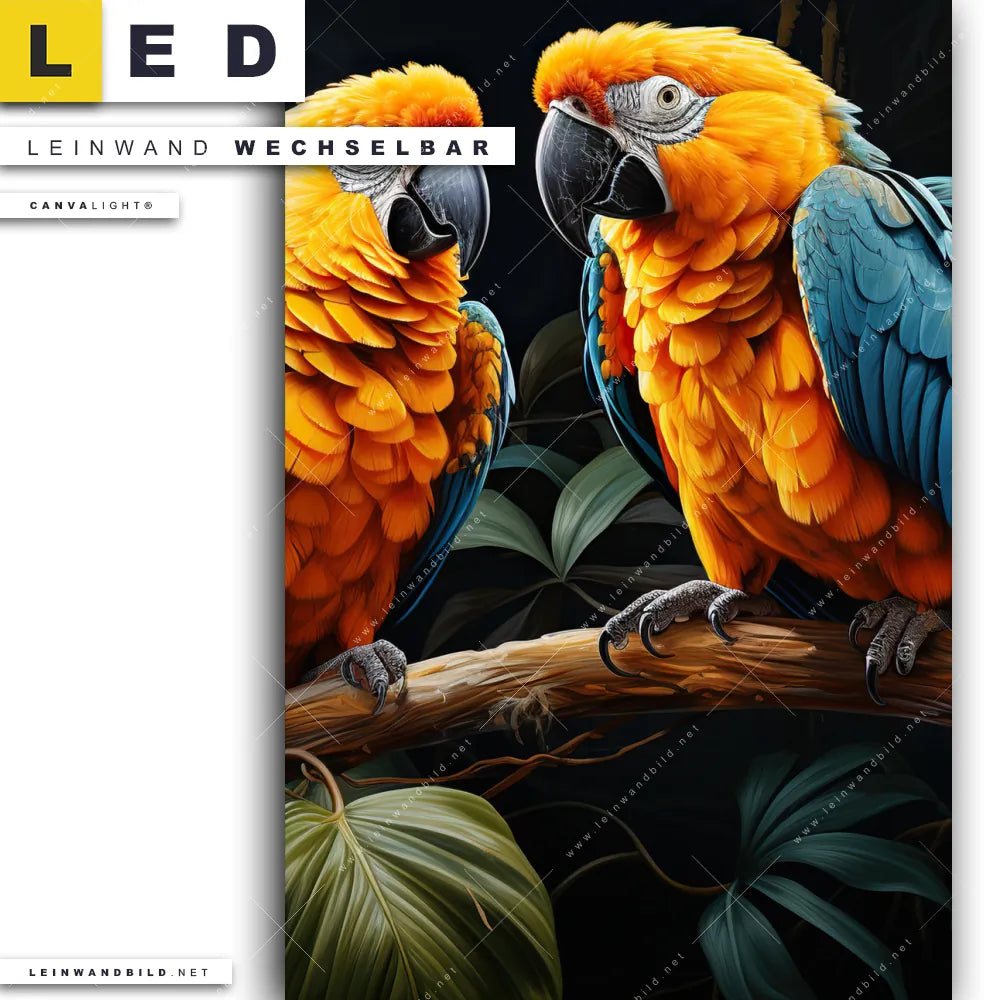 LED Leinwandbild Canvalight® TEX | Papageien auf einem Ast | Hochformat