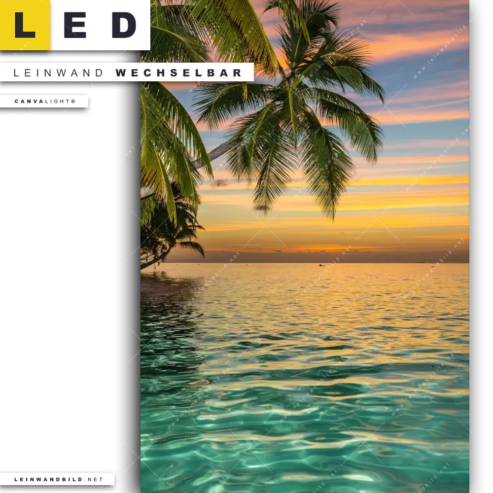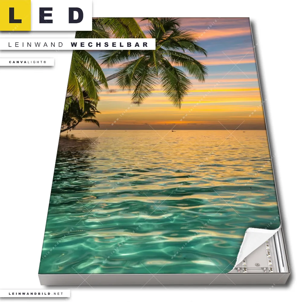 Du bist auf der Suche nach einem Landschaften, Strand - Meer LED Leinwandbild im Hochformat? Begriffe wie Palmen, Horizont, Ozean, Insel, Meer, Sommer, Südsee - Karibik, Urlaub - Reisen, Sonnenuntergang - Sonnenaufgang haben Dich auf der Suche nach Deinem neuen XXL LED Wandbild mit wechselbarer Leinwand inspiriert? Farben wie Orange, Grün, Blau dürfen auf Deinem neuen Leinwand-LED-Bild nicht fehlen und Leuchtbilder im Retro - Vintage, Natürlich - Realistisch Stil passen perfekt zu Deinem Einrichtungsstil?