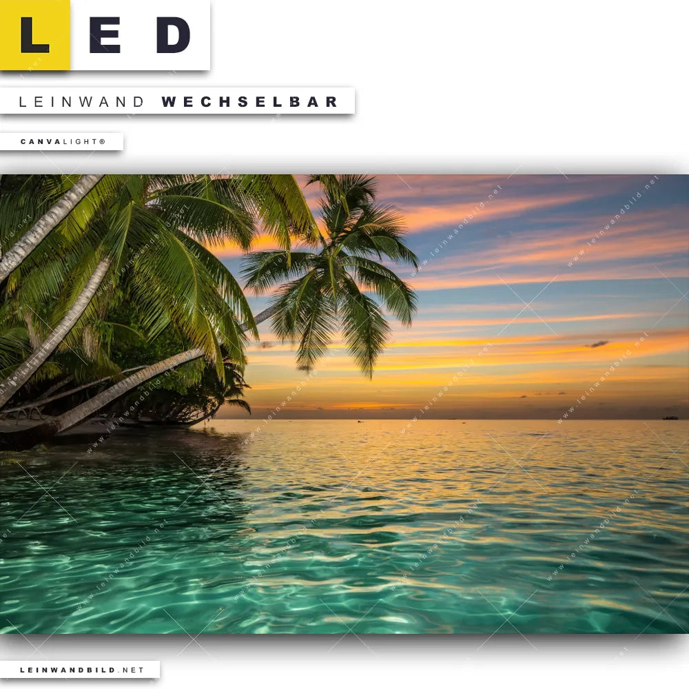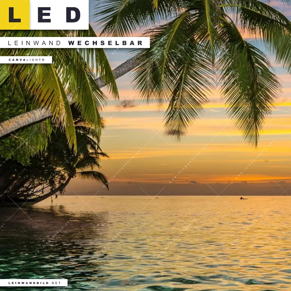 Du bist auf der Suche nach einem Landschaften, Strand - Meer LED Leinwandbild im Querformat? Begriffe wie Palmen, Horizont, Ozean, Insel, Meer, Sommer, Südsee - Karibik, Urlaub - Reisen, Sonnenuntergang - Sonnenaufgang haben Dich auf der Suche nach Deinem neuen XXL LED Wandbild mit wechselbarer Leinwand inspiriert? Farben wie Orange, Grün, Blau dürfen auf Deinem neuen breiten Leinwand-LED-Bild nicht fehlen und Leuchtbilder im Retro - Vintage, Natürlich - Realistisch Stil passen perfekt zu Deinem Einrichtungsstil?