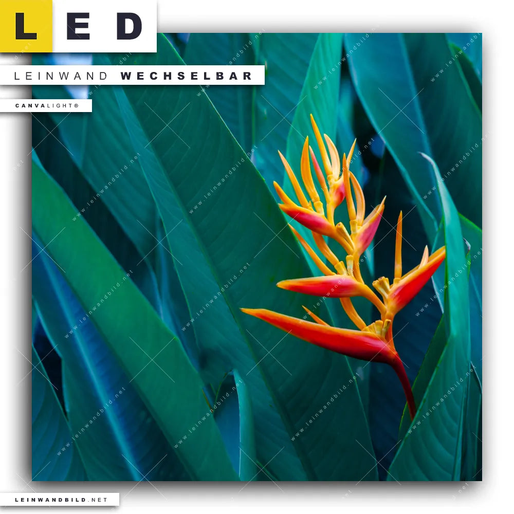 Du bist auf der Suche nach einem Blumen - Botanik LED Leinwandbild im Quadratischen Format? Begriffe wie Blume, Blüte, Pflanze, Paradiesvogelblume haben Dich auf der Suche nach Deinem neuen XXL LED Wandbild mit wechselbarer Leinwand inspiriert? Farben wie Grün, Orange, Rot, Blau, Rosa dürfen auf Deinem neuen Leinwand-LED-Bild nicht fehlen und Leuchtbilder im Floral, Natürlich - Realistisch Stil passen perfekt zu Deinem Einrichtungsstil?