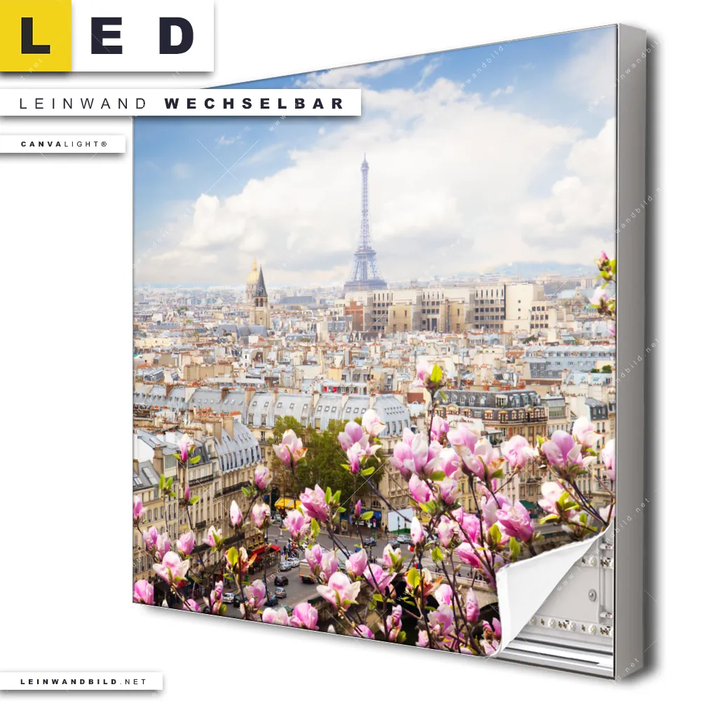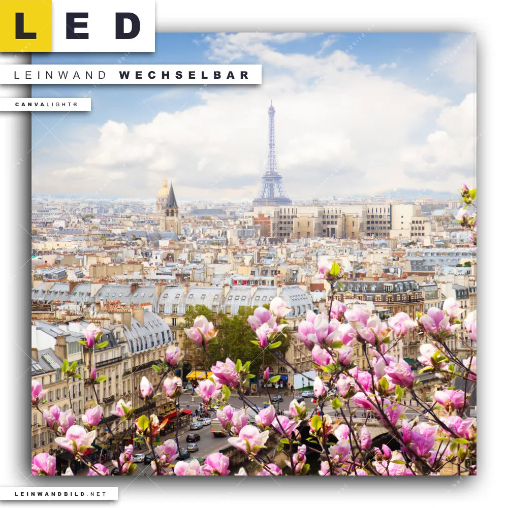 Du bist auf der Suche nach einem Städte - Skylines LED Leinwandbild im Quadratischen Format? Begriffe wie Sehenswürdigkeiten, Frankreich, Paris, Eiffelturm, Skyline, Häuser, Frühling, Magnolie haben Dich auf der Suche nach Deinem neuen XXL LED Wandbild mit wechselbarer Leinwand inspiriert? Farben wie Beige, Pink dürfen auf Deinem neuen Leinwand-LED-Bild nicht fehlen und Leuchtbilder im Retro - Vintage Stil passen perfekt zu Deinem Einrichtungsstil?