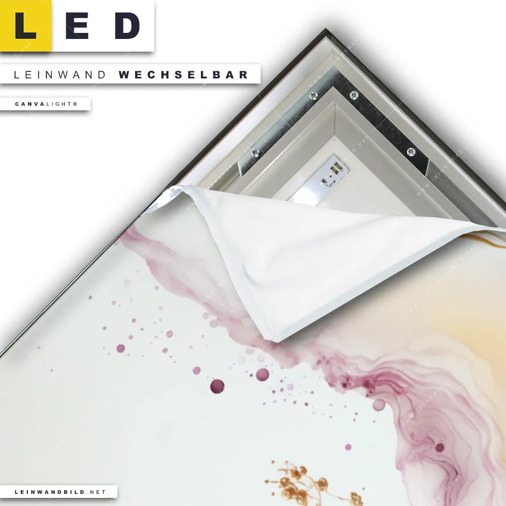 Du konfigurierst Dein individuelles LED Leinwandbild Canvalight® TEX | Pastell Blüten Moderne Kunst | Hochformat und wir produzieren es NEU für Dich. Unsere Blumen - Botanik, Muster - Texturen LED Bilder mit wechselbarer Textil-Leinwand sind KEINE Lagerware. Du bist Dir unsicher, welches Motiv oder Format das richtige für dein individuelles Canvalight® Leuchtbild ist, dann helfen wir dir gerne weiter und beraten dich!