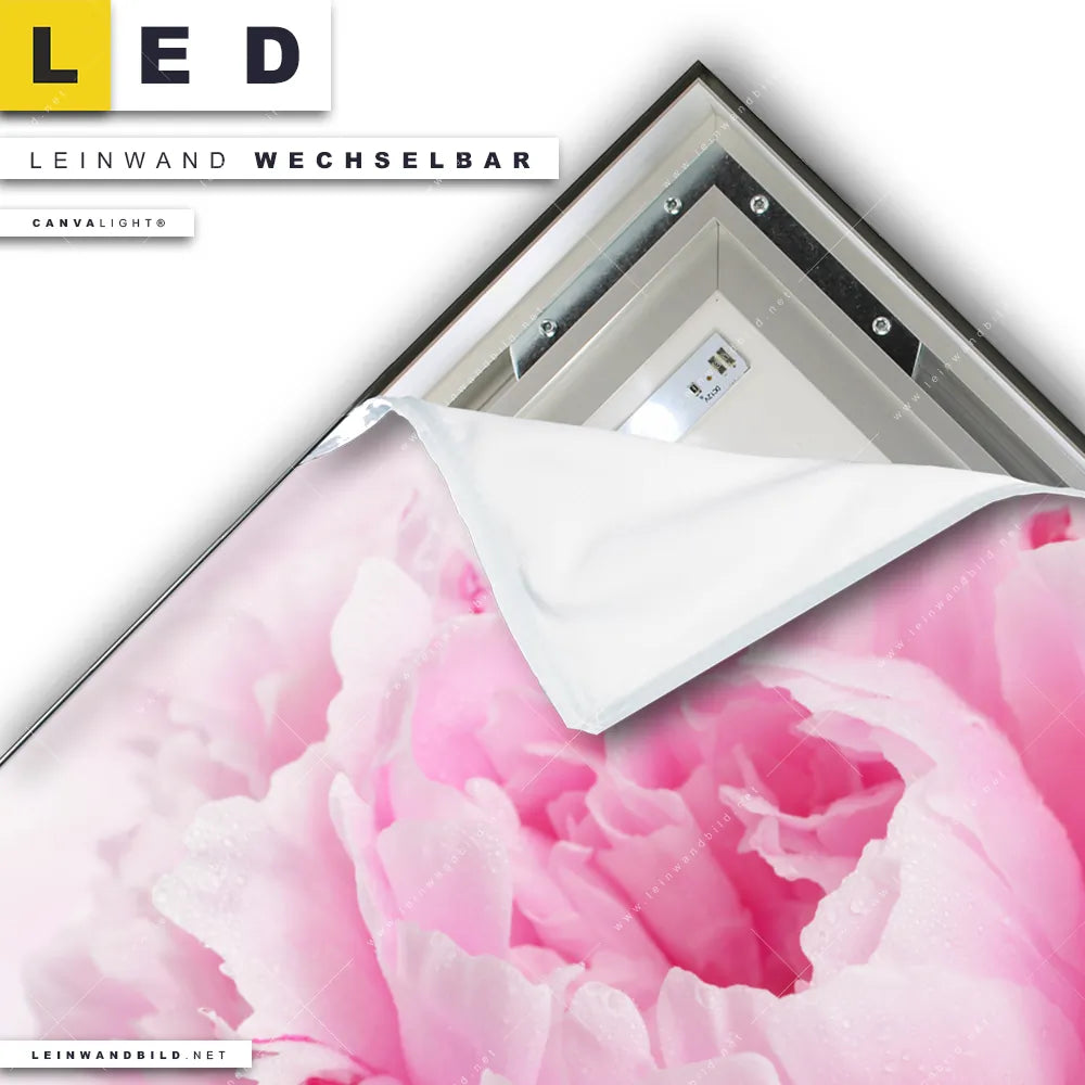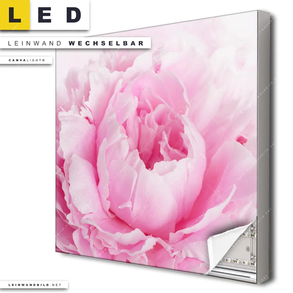 Du konfigurierst Dein individuelles LED Leinwandbild Canvalight® TEX | Pfingstrose | Quadrat und wir produzieren es NEU für Dich. Unsere Blumen - Botanik LED Bilder mit wechselbarer Textil-Leinwand sind KEINE Lagerware. Du bist Dir unsicher, welches Motiv oder Format das richtige für dein individuelles Canvalight® Leuchtbild ist, dann helfen wir dir gerne weiter und beraten dich!