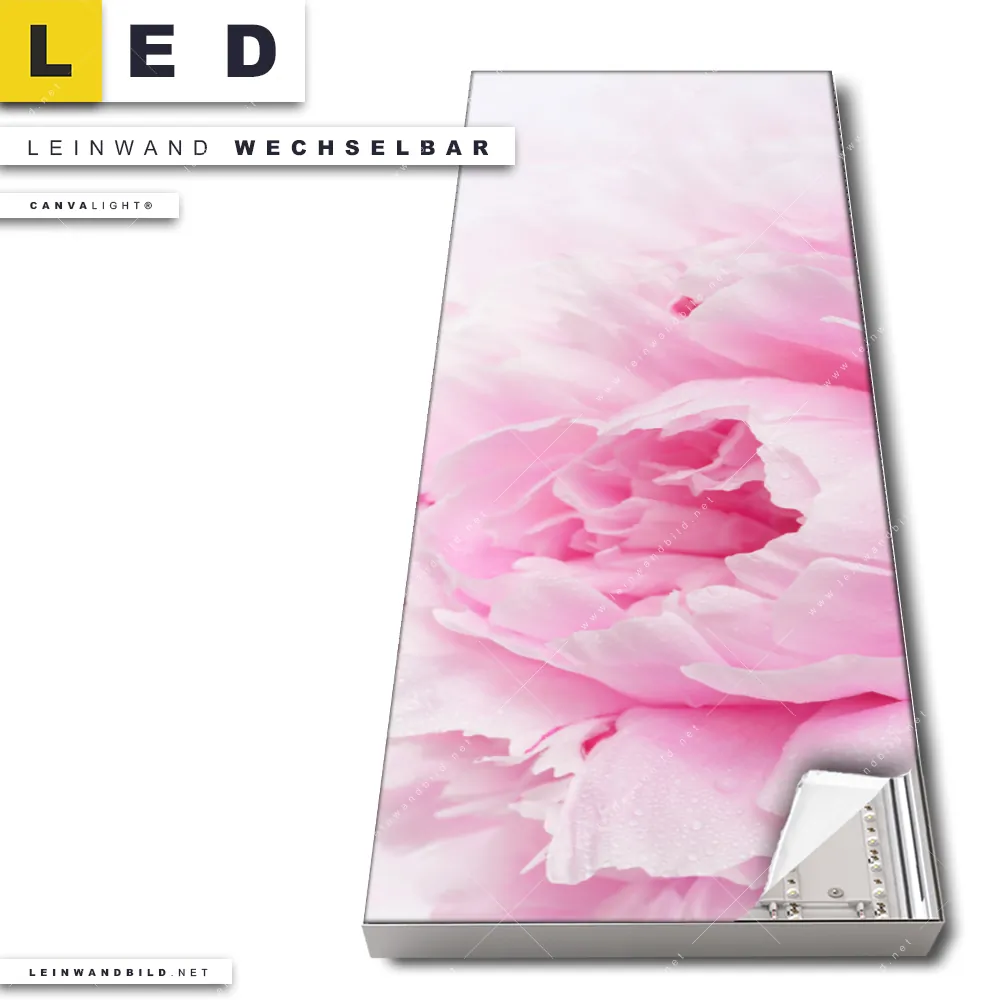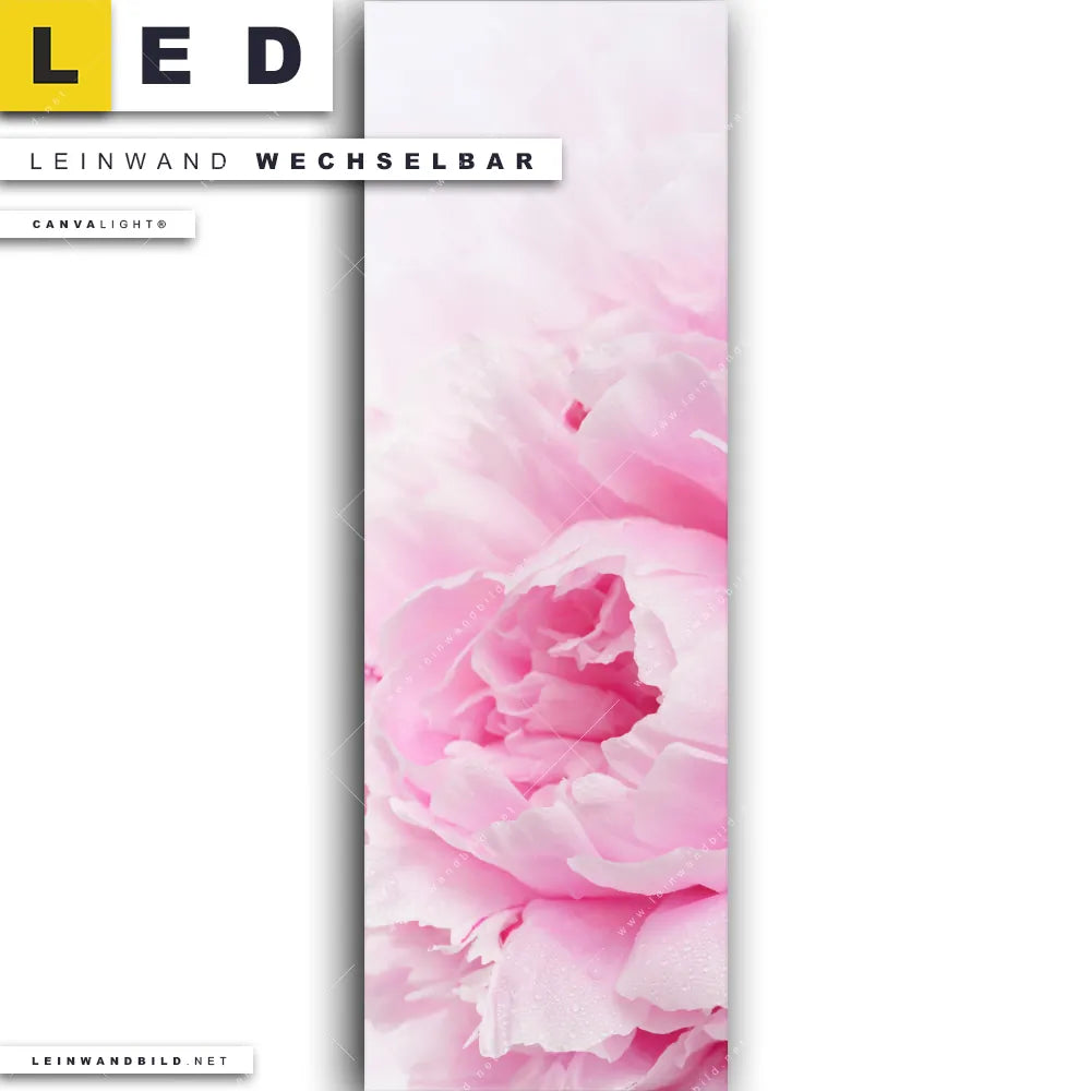 Du konfigurierst Dein individuelles LED Leinwandbild Canvalight® TEX | Pfingstrose | Schmal und wir produzieren es NEU für Dich. Unsere Blumen - Botanik LED Bilder mit wechselbarer Textil-Leinwand sind KEINE Lagerware. Du bist Dir unsicher, welches Motiv oder Format das richtige für dein individuelles Canvalight® Leuchtbild ist, dann helfen wir dir gerne weiter und beraten dich!