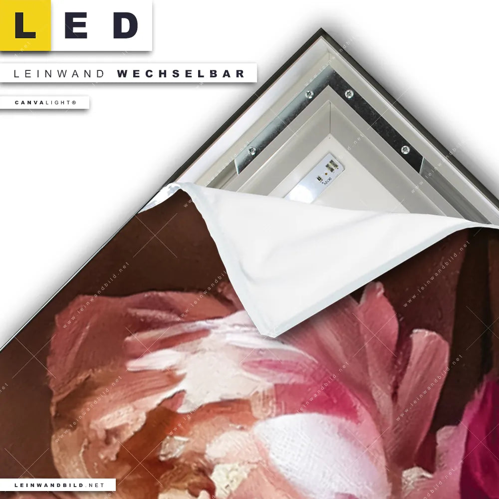 Du konfigurierst Dein individuelles LED Leinwandbild Canvalight® TEX | Pfingstrosen im Barockstil | Schmal und wir produzieren es NEU für Dich. Unsere Blumen - Botanik LED Bilder mit wechselbarer Textil-Leinwand sind KEINE Lagerware. Du bist Dir unsicher, welches Motiv oder Format das richtige für dein individuelles Canvalight® Leuchtbild ist, dann helfen wir dir gerne weiter und beraten dich!