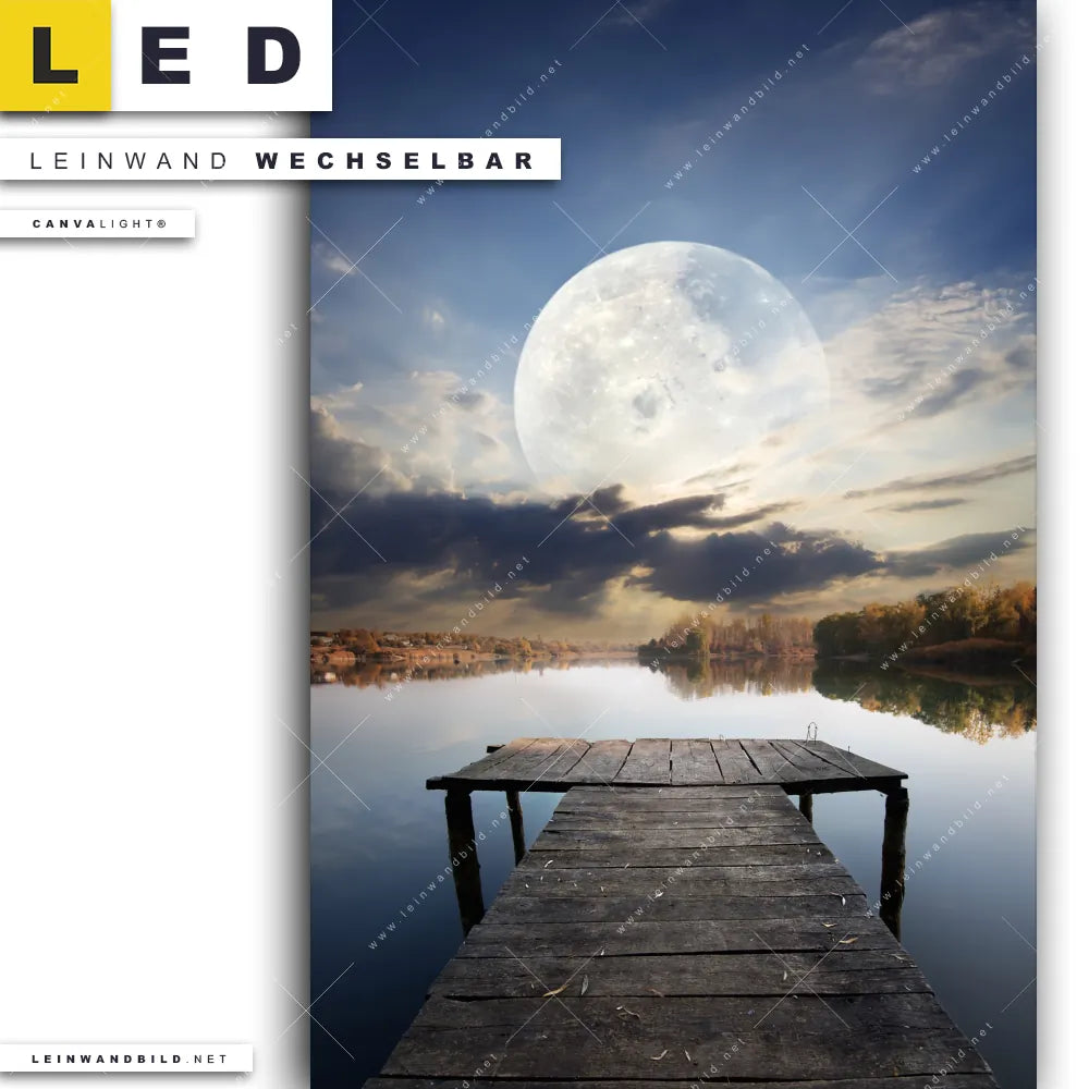 Dann sollte das LED Leinwandbild Canvalight® TEX | Pier am Fluss | Hochformat den Weg zu Dir finden. Das stufenlos dimmbare Leinwandbild Vollmond am See im steckerfertigen Leuchtrahmen mit Fernbedienung und optionaler Farbtemperatursteuerung fügt sich als Eye-Catcher harmonisch in jedes Arzt - Praxis, Wohnzimmer - Schlafzimmer, Flur - Eingangsbereich Raumkonzept ein.
