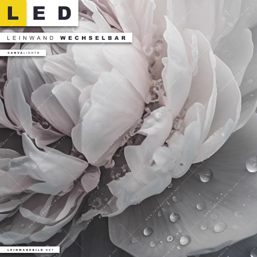 Du bist auf der Suche nach einem Blumen - Botanik LED Leinwandbild im Hochformat? Begriffe wie Pfingstrose, Pflanze, Natur, Nahaufnahme, Draufsicht, Wassertropfen, Blüten, Rose haben Dich auf der Suche nach Deinem neuen XXL LED Wandbild mit wechselbarer Leinwand inspiriert? Farben wie Weiss, Rosa, Grau dürfen auf Deinem neuen Leinwand-LED-Bild nicht fehlen und Leuchtbilder im Floral, Retro - Vintage, Schwarz - Weiss Stil passen perfekt zu Deinem Einrichtungsstil?