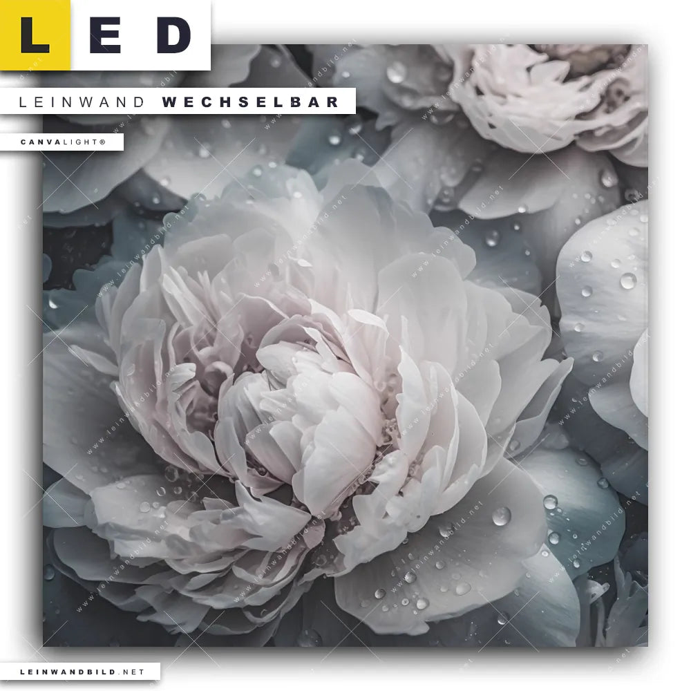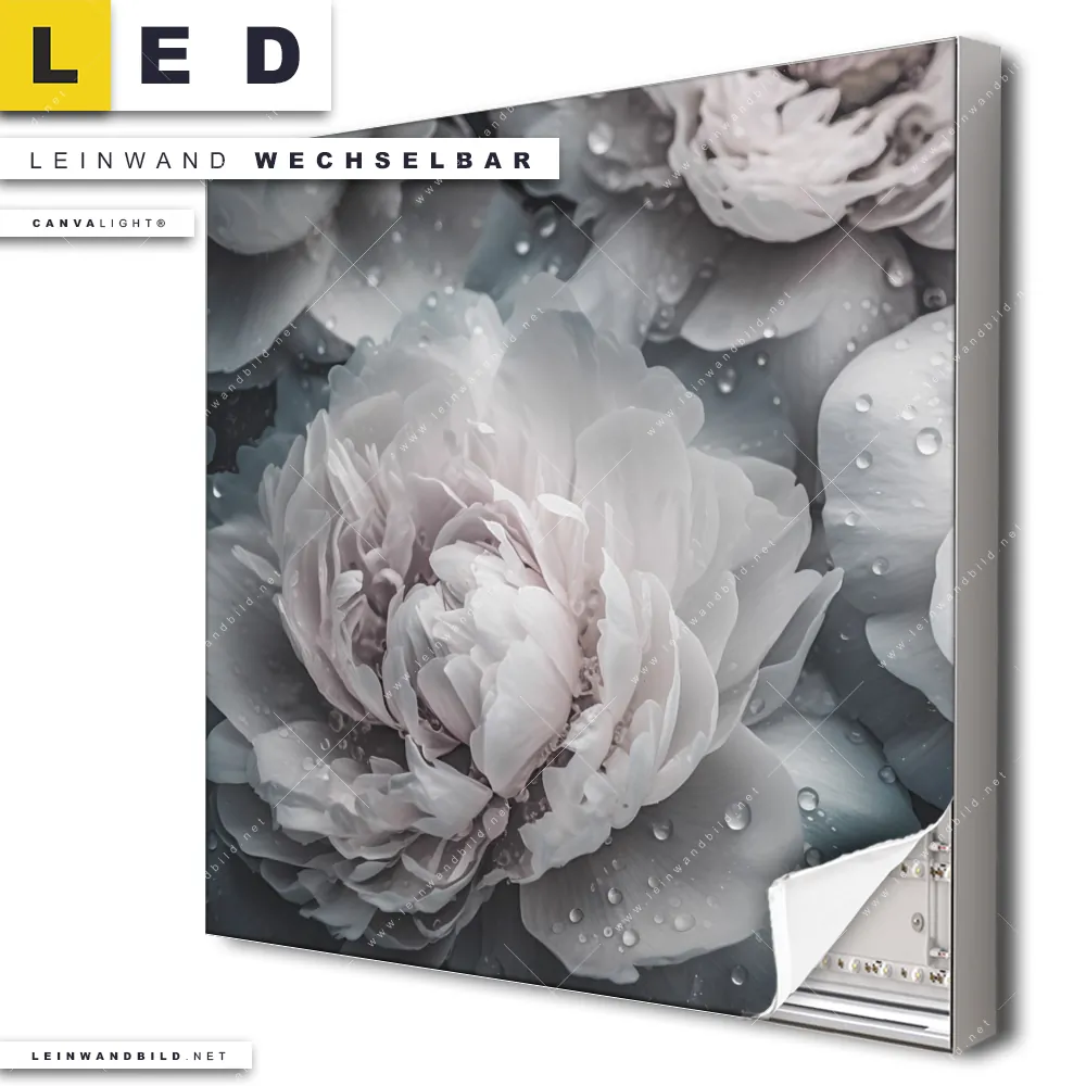 Du bist auf der Suche nach einem Blumen - Botanik LED Leinwandbild im Quadratischen Format? Begriffe wie Pfingstrose, Pflanze, Natur, Nahaufnahme, Draufsicht, Wassertropfen, Blüten, Rose haben Dich auf der Suche nach Deinem neuen XXL LED Wandbild mit wechselbarer Leinwand inspiriert? Farben wie Weiss, Rosa, Grau dürfen auf Deinem neuen Leinwand-LED-Bild nicht fehlen und Leuchtbilder im Floral, Retro - Vintage, Schwarz - Weiss Stil passen perfekt zu Deinem Einrichtungsstil?
